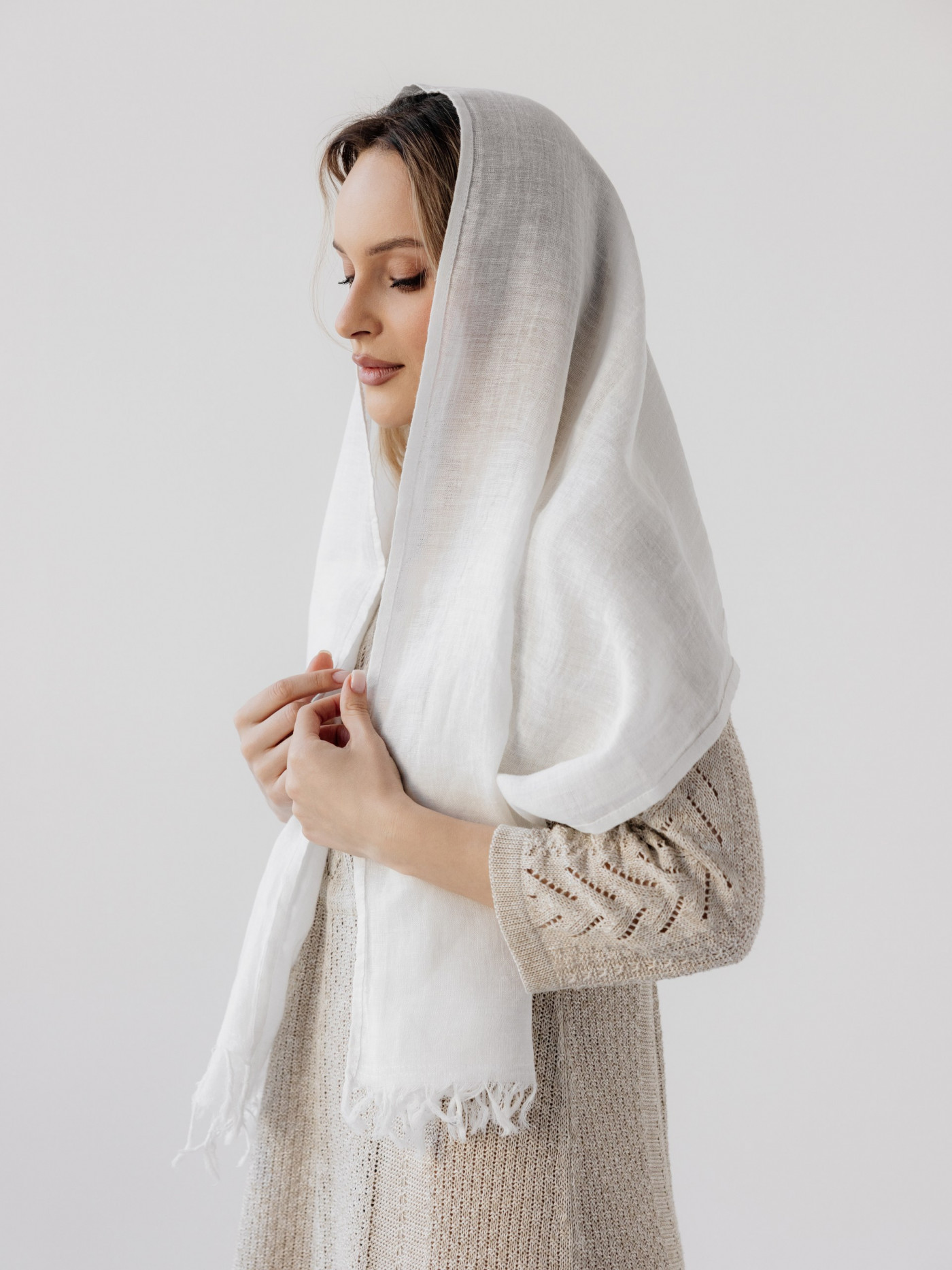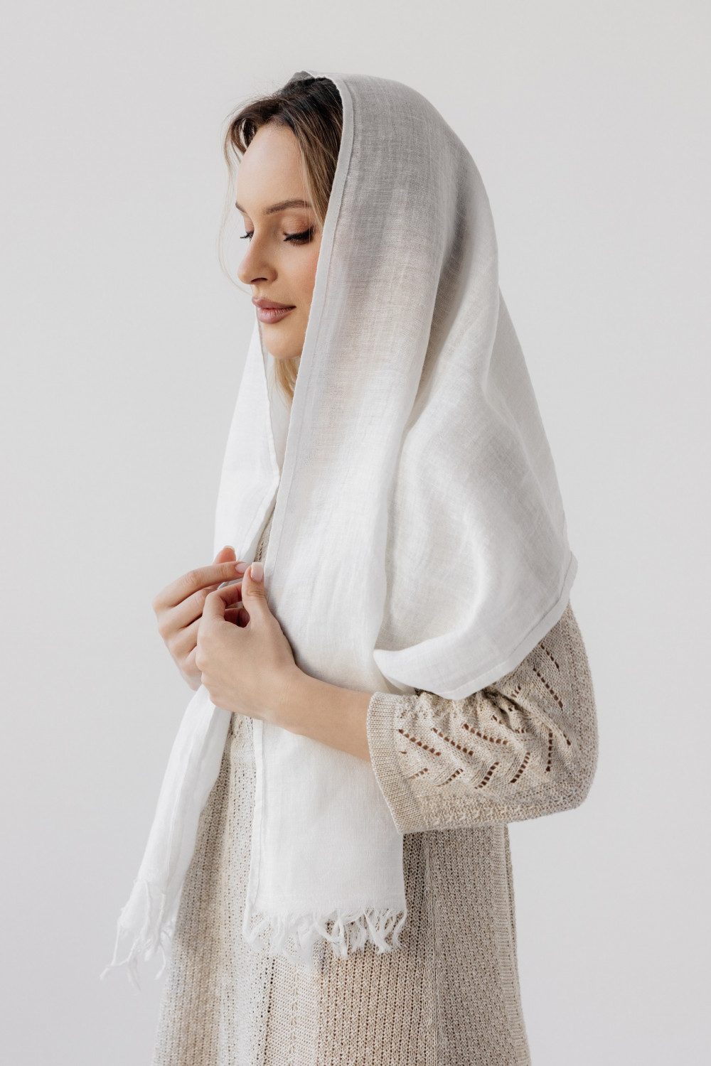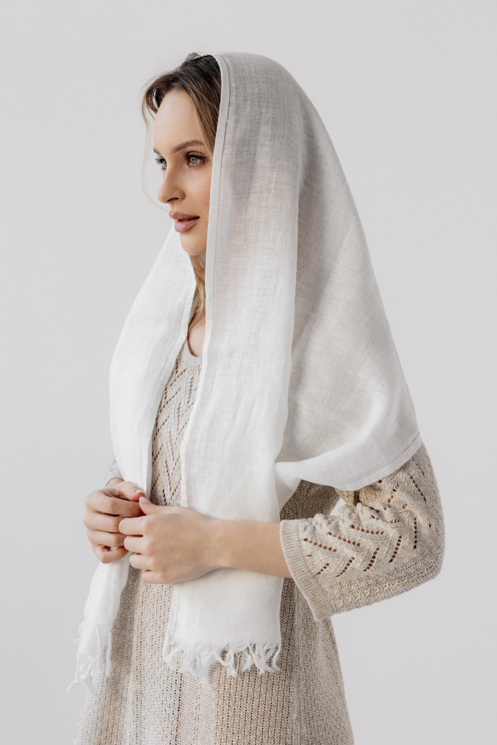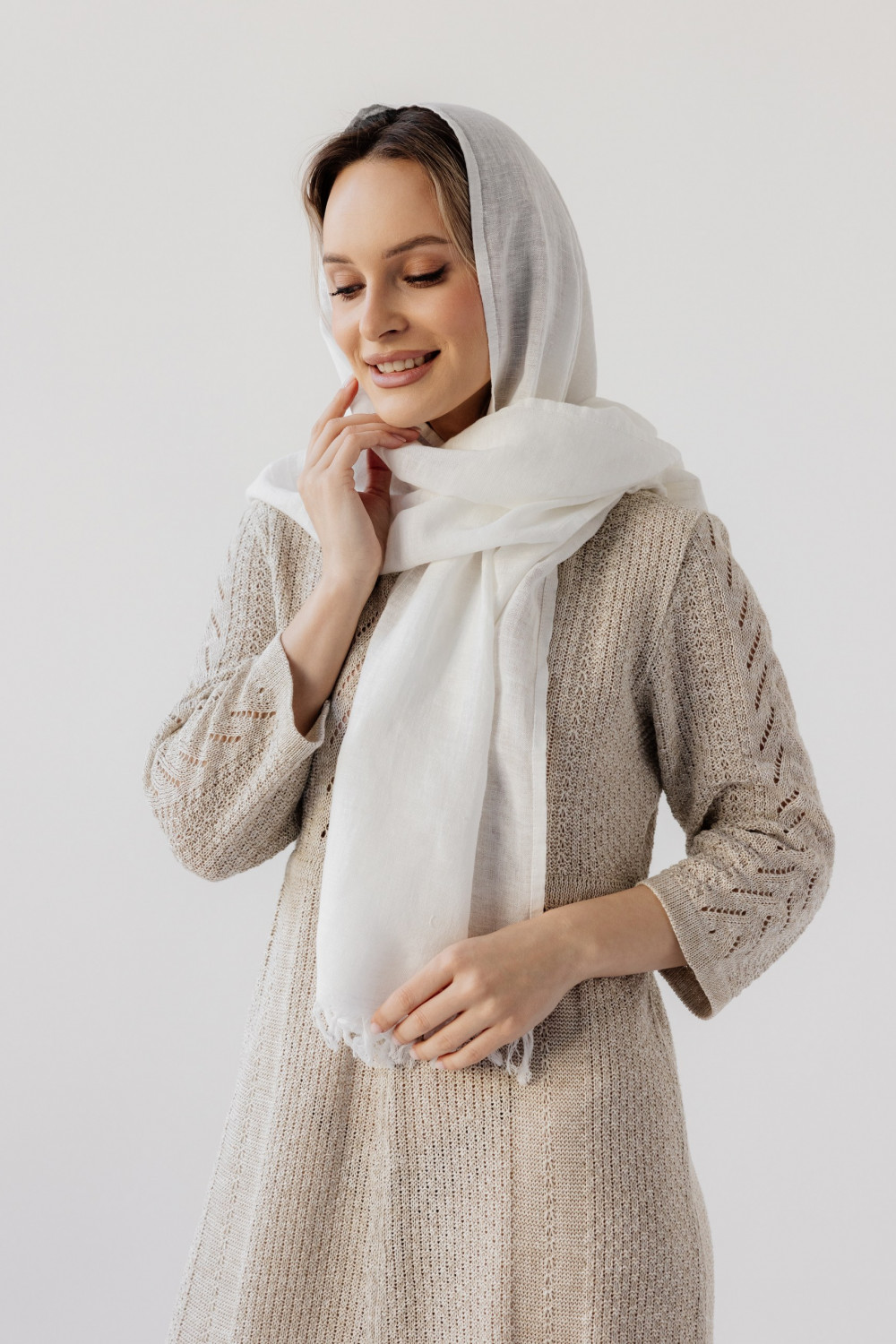 Палантин льняной 17-22V белый