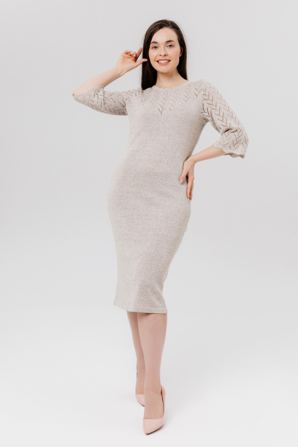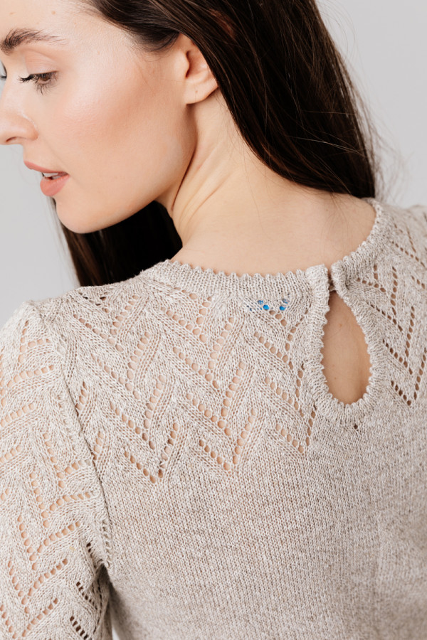 Рукав 3/4 втачной, ажурный, кокетка ажурная.