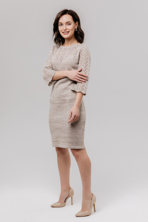 Рукав 3/4 втачной, ажурный, кокетка ажурная.