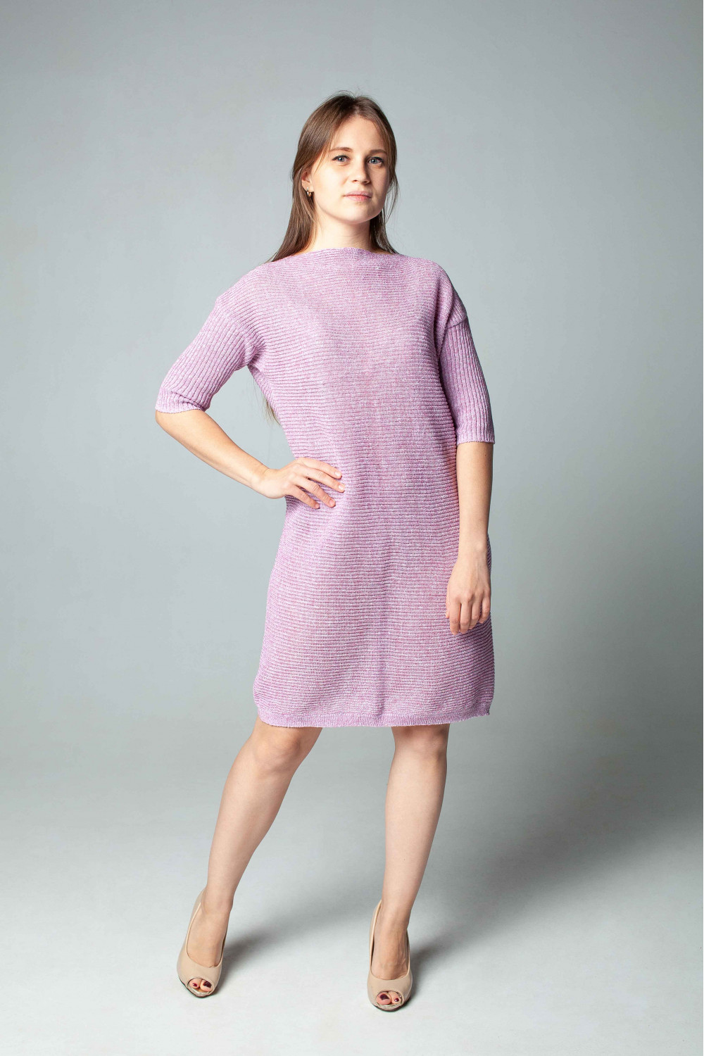 Платье 100 % лен. Силуэт прямой, рукав короткий.