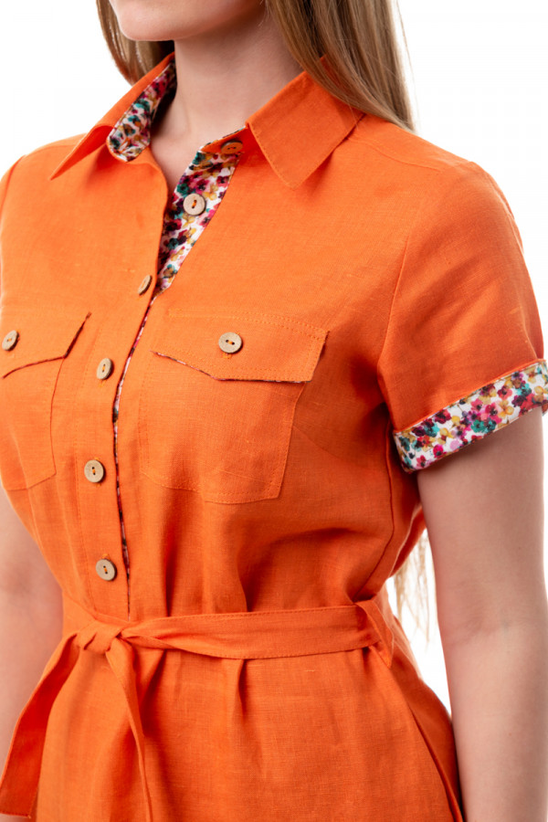 Платье 100 % лен. Силуэт прямой, слегка приталенный, по бокам разрезы.