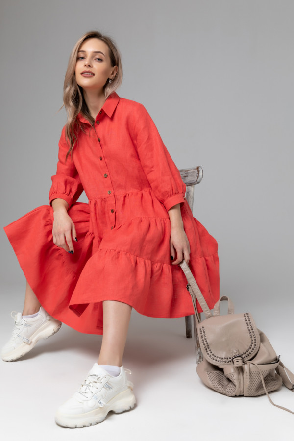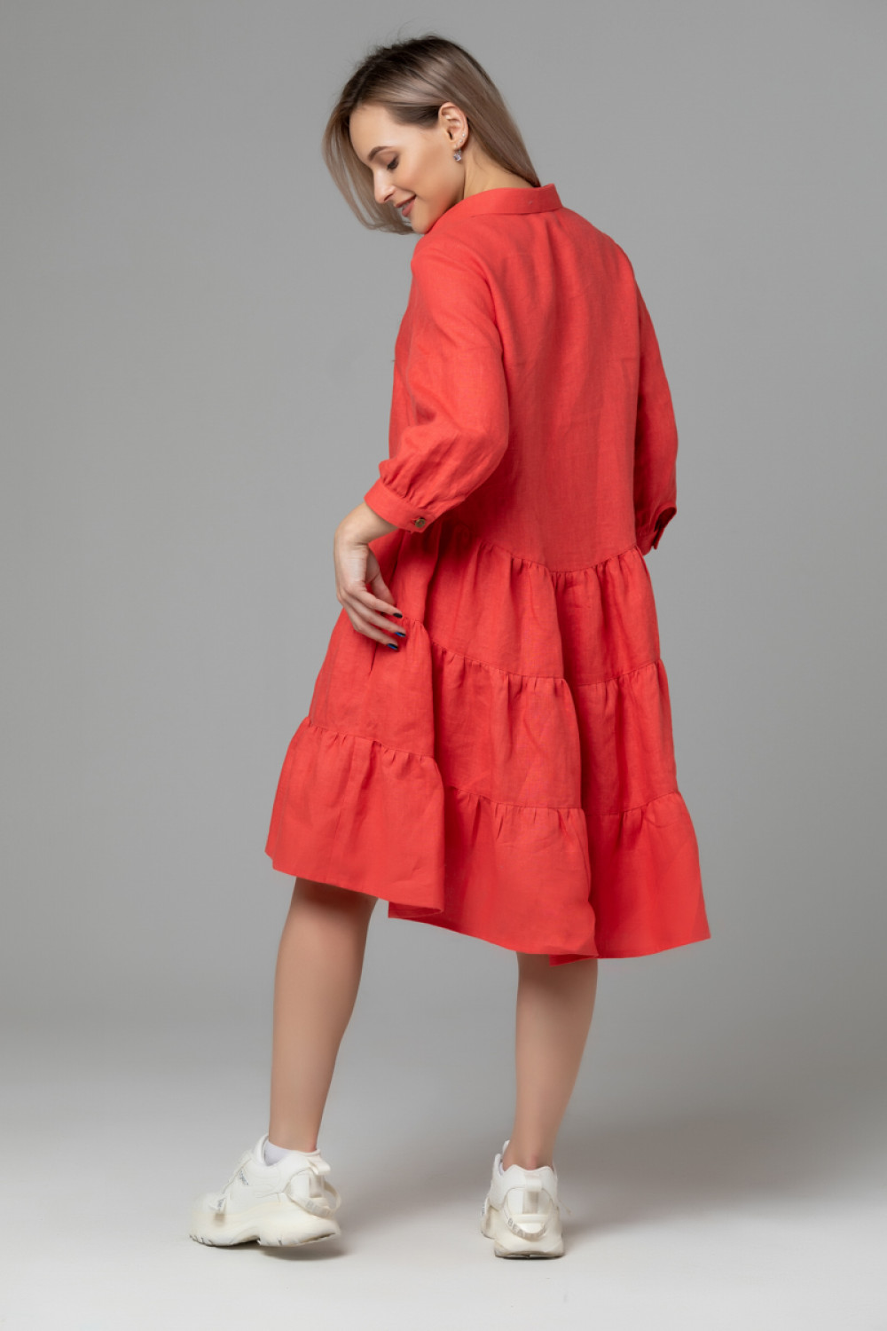 Платье 100 % лен с воланами. Силуэт свободный. На размере 52-54 дополнительный волан.
