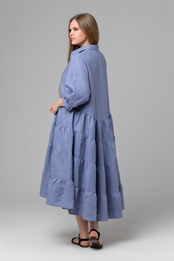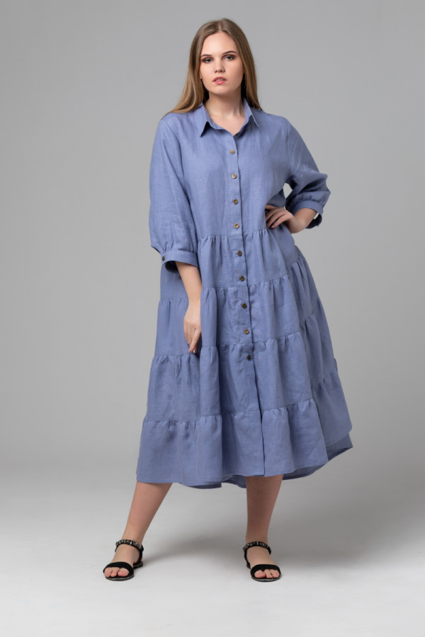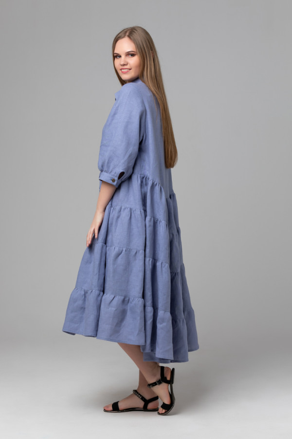 Платье 100 % лен с воланами. Силуэт свободный. На размере 52-54 дополнительный волан.