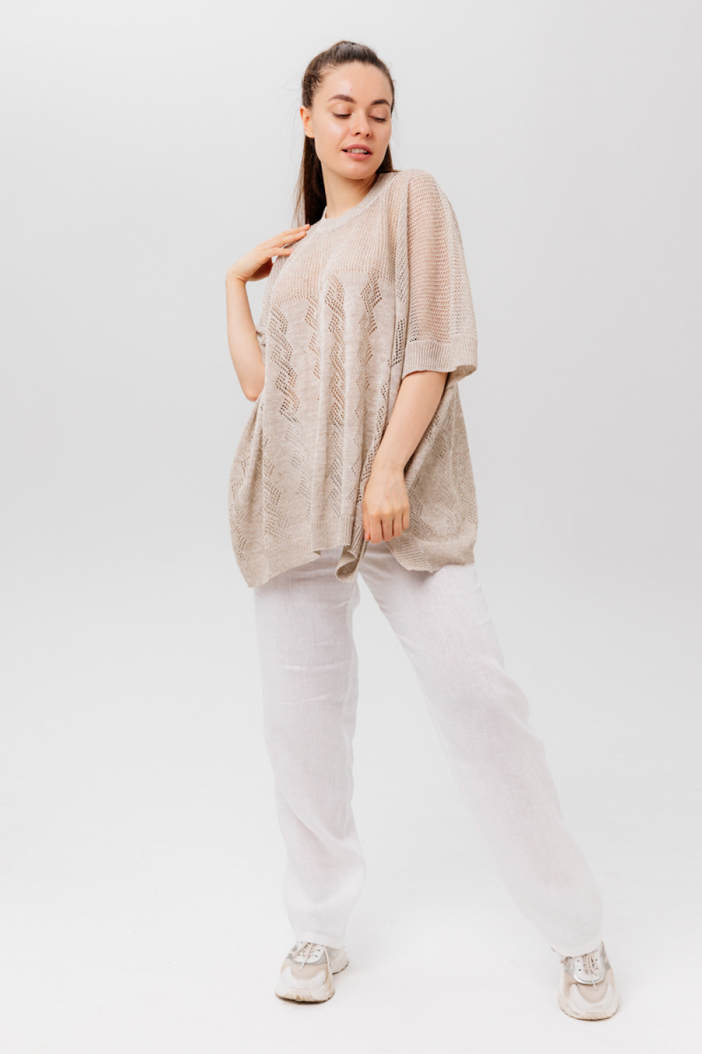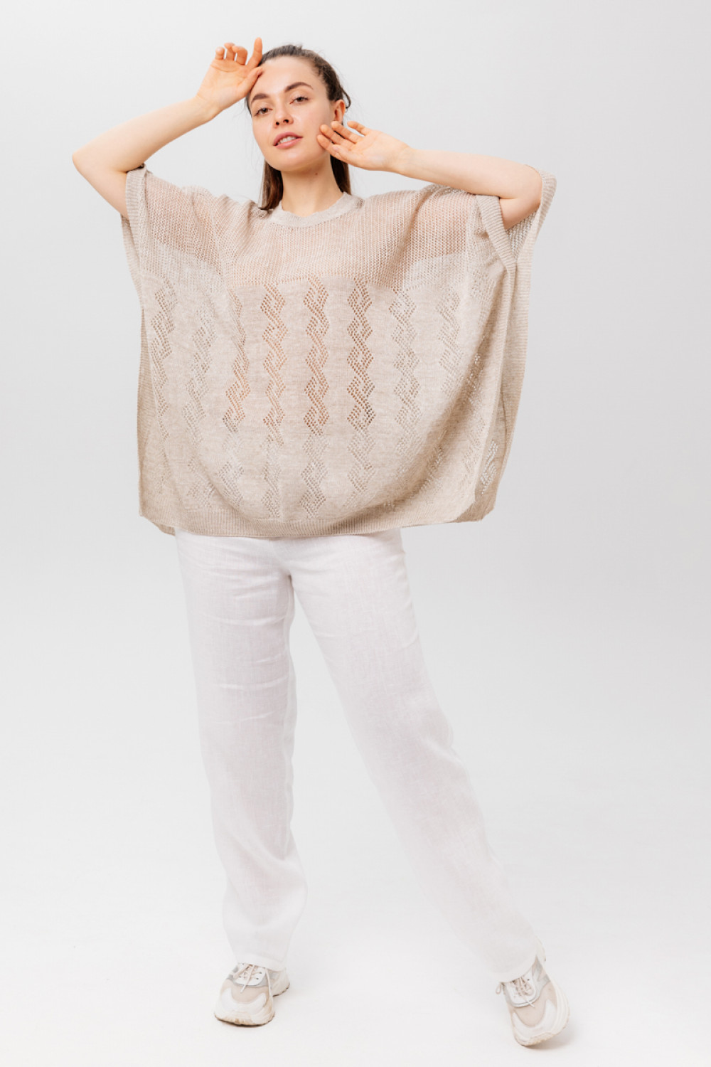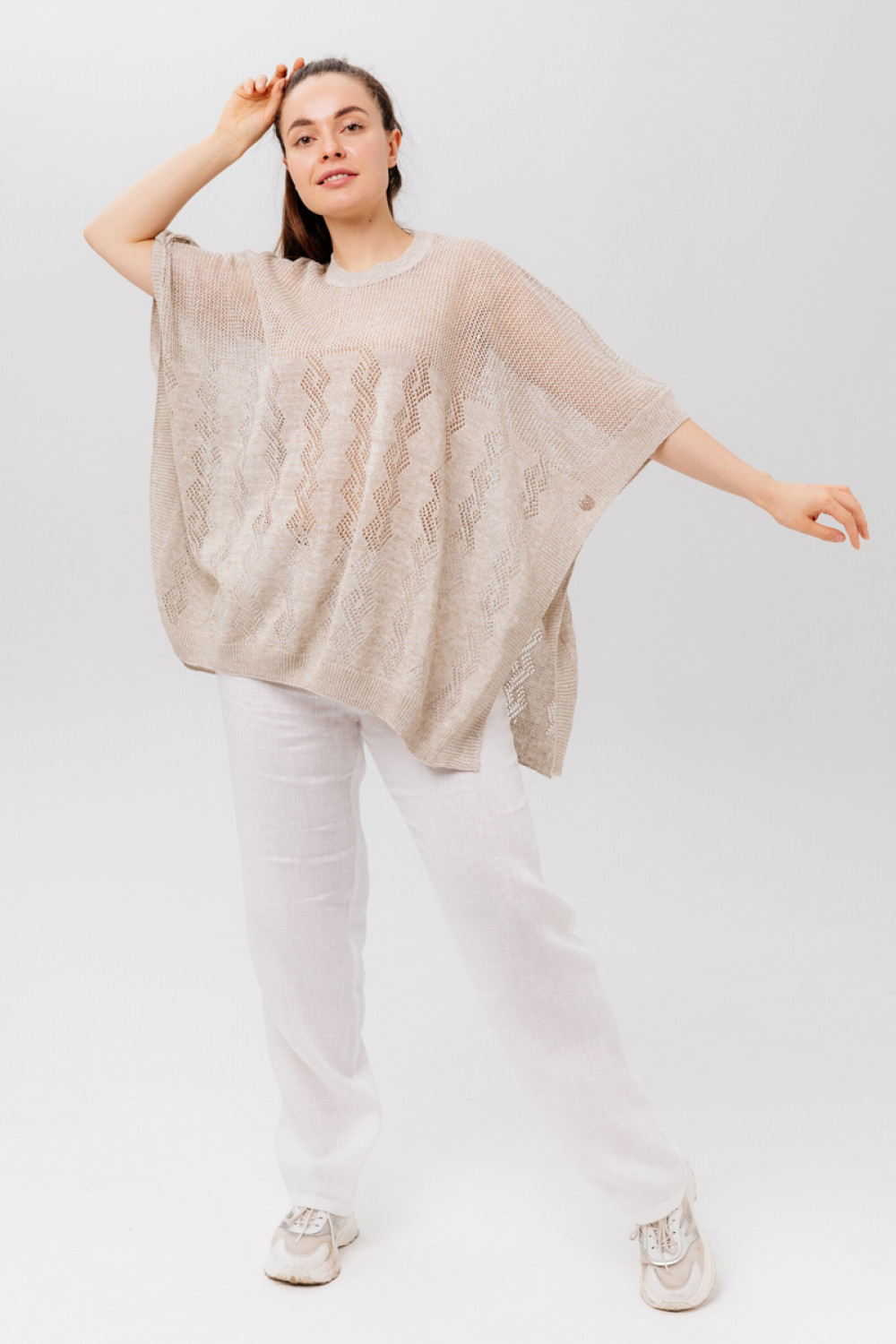 Пончо 100% лен, силует свободный, ажурное.