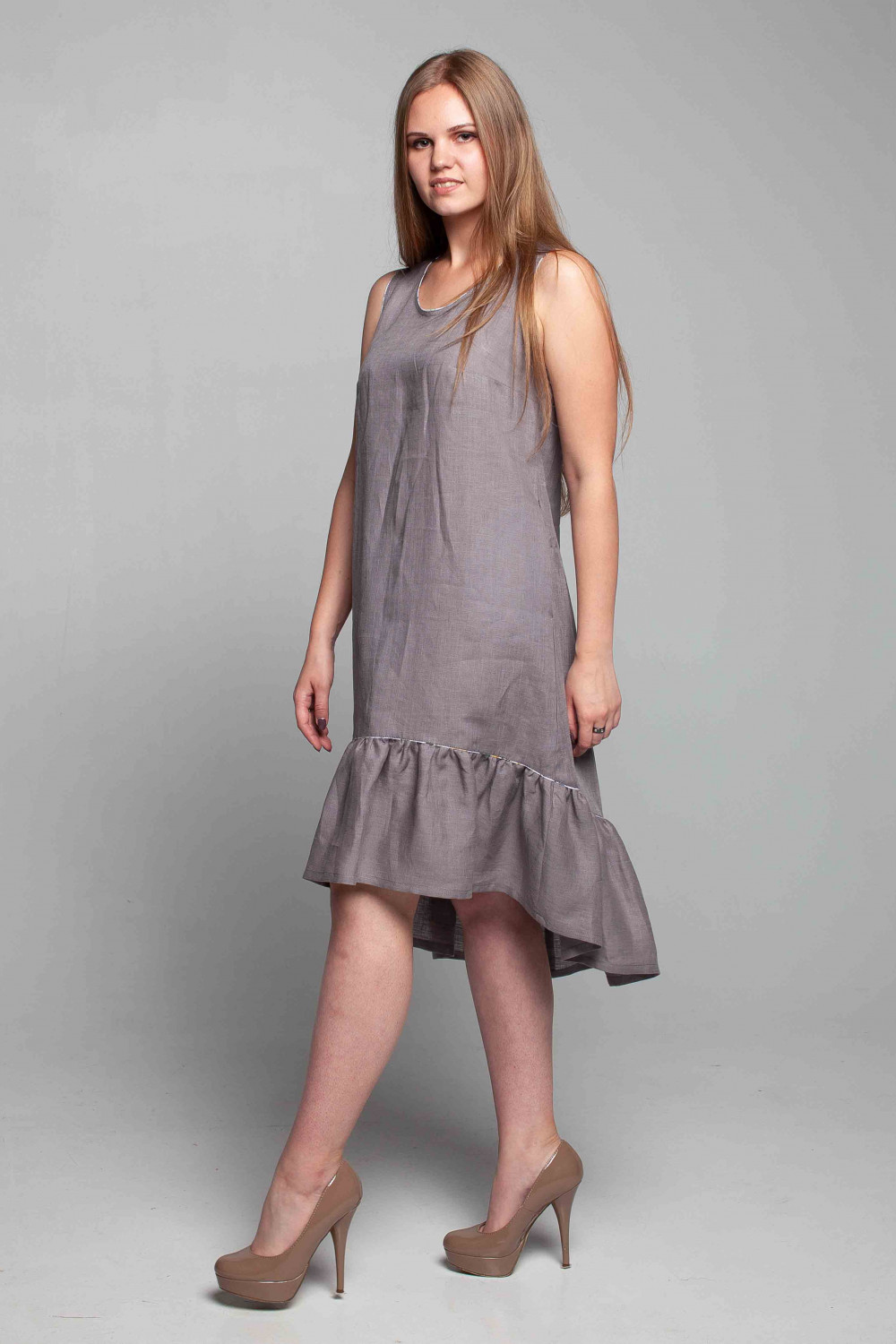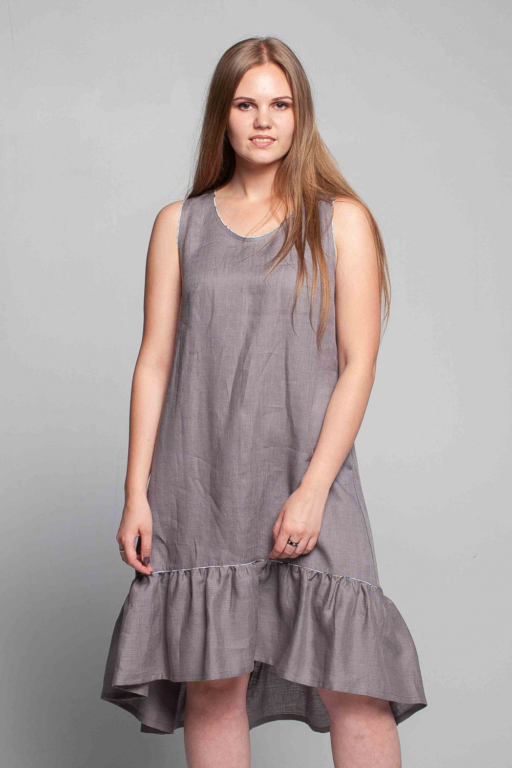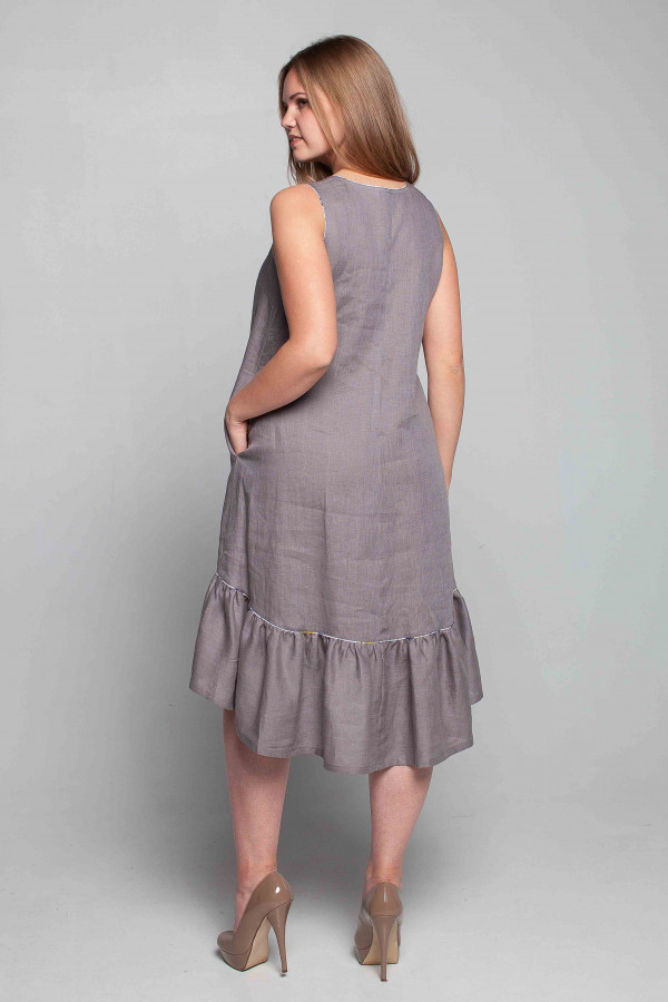 Сарафан из льняной ткани, силуэт свободный в стиле "Бохо".