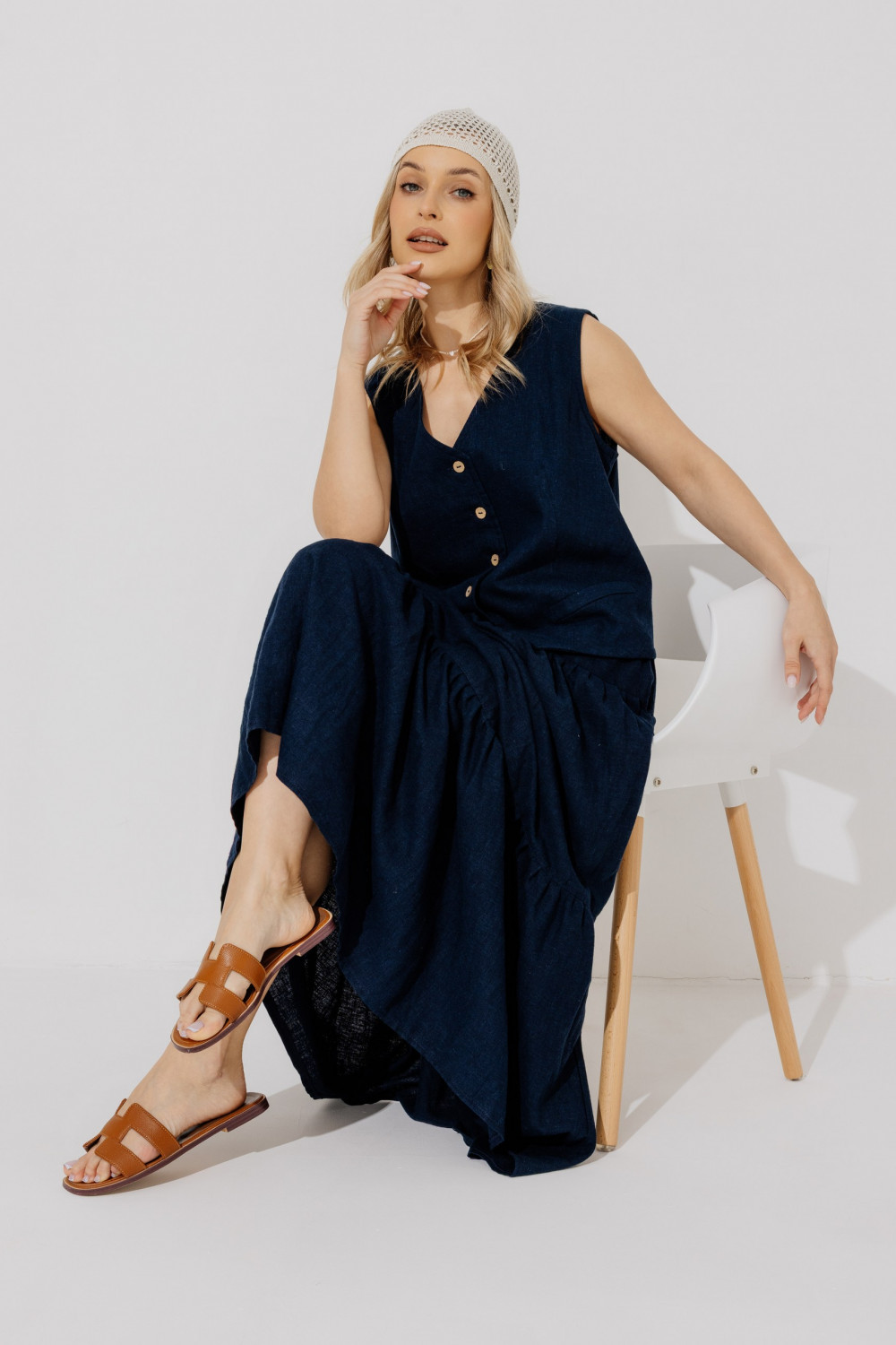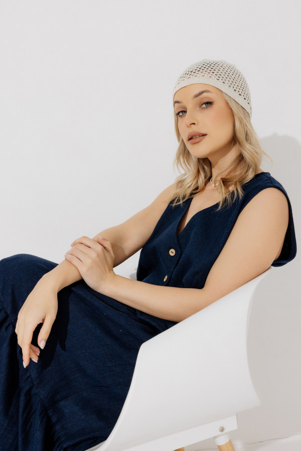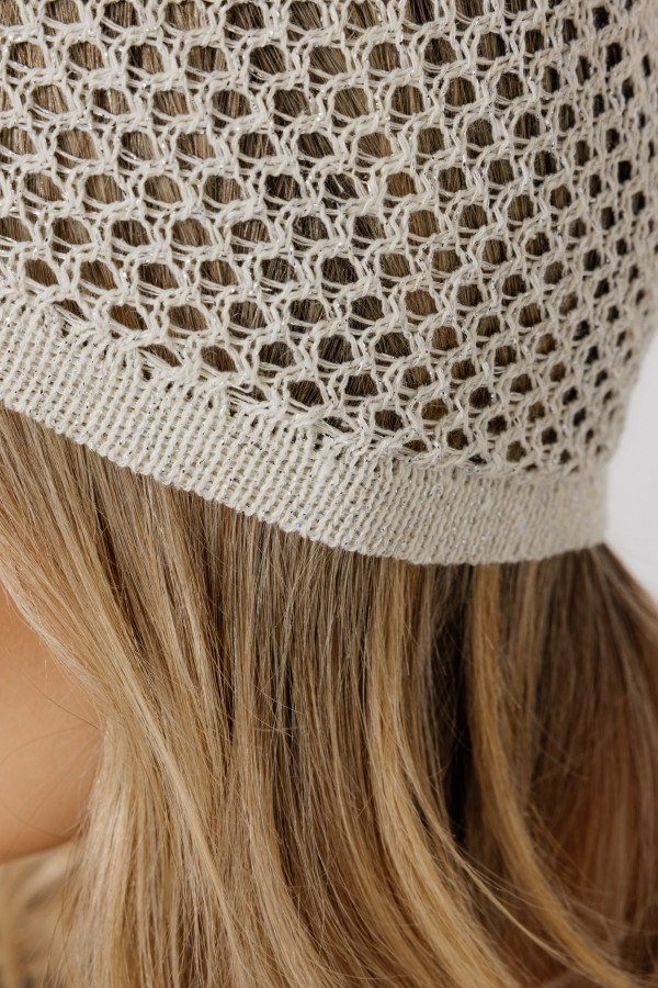 Шапочка лен 95%, 5% люрекс, ажур сетка.