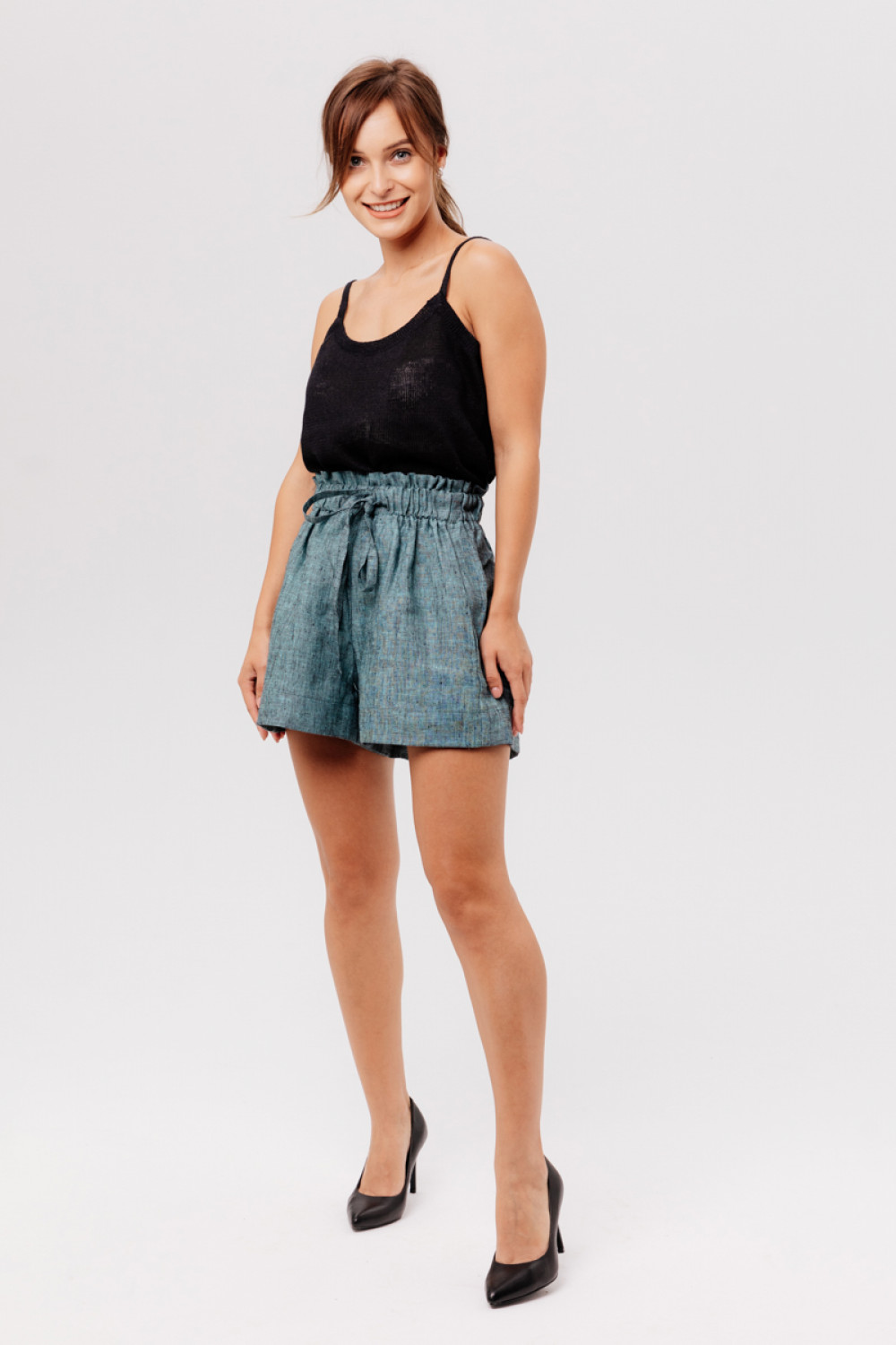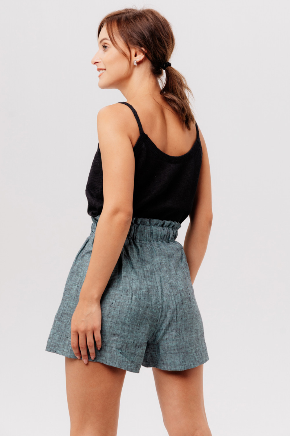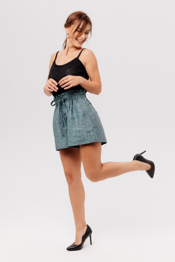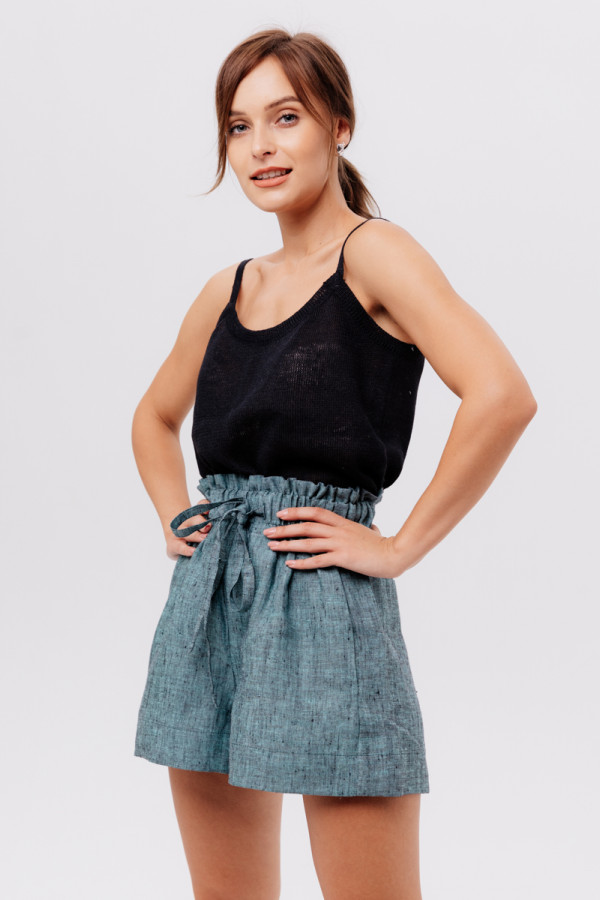 Шорты из 100% льна на высокой талии.