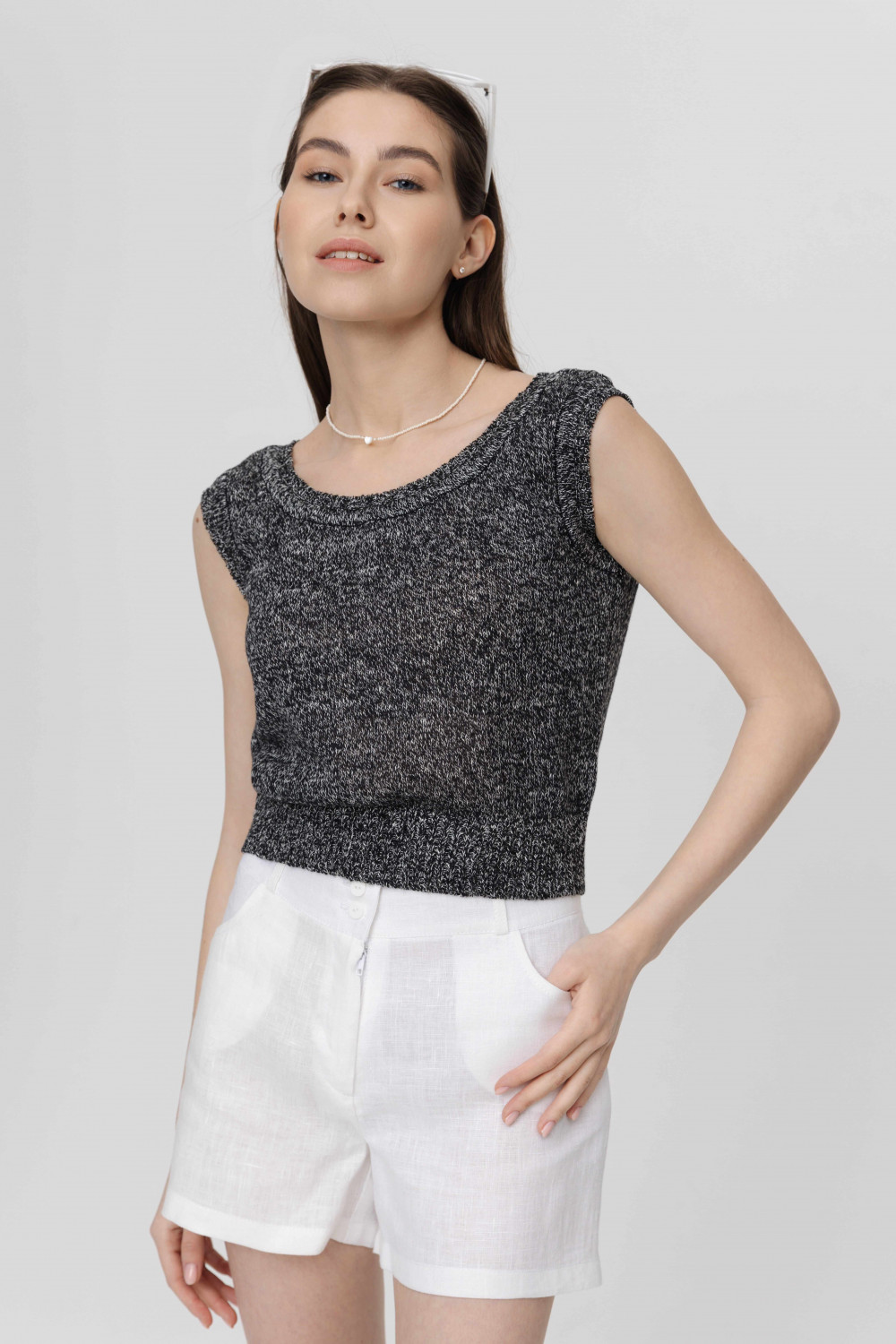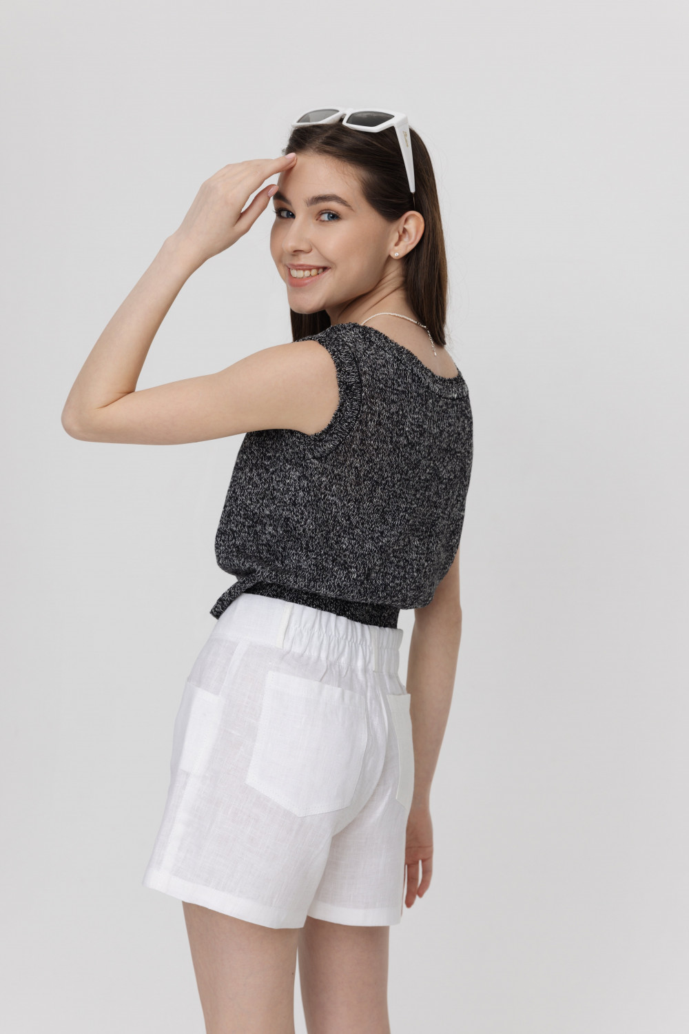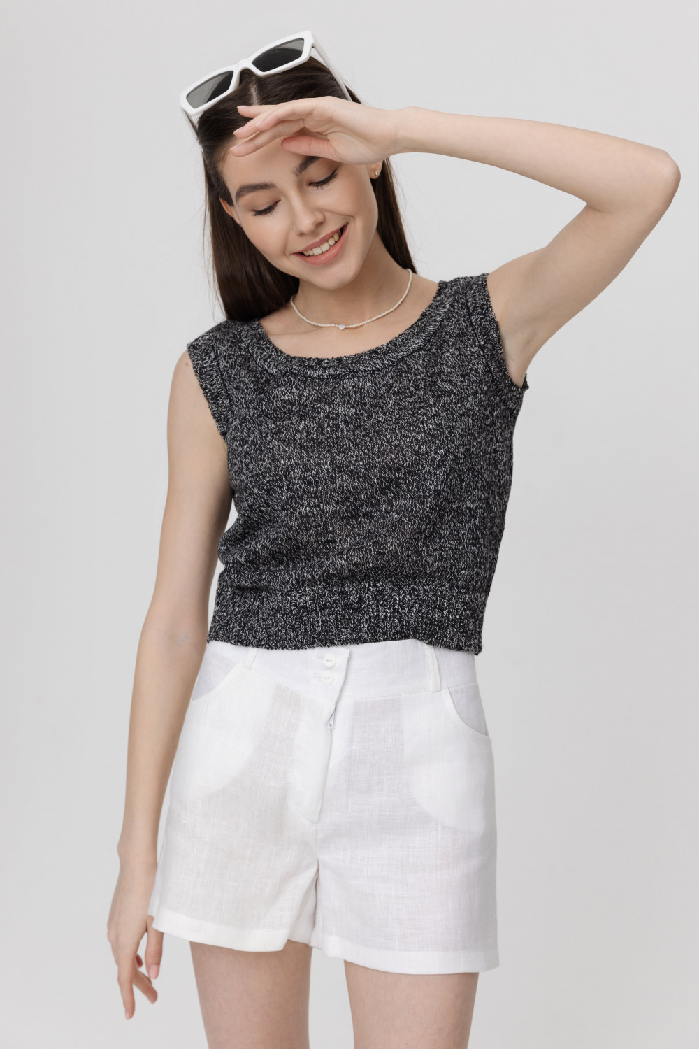 Шорты из 100% льна на высокой талии.