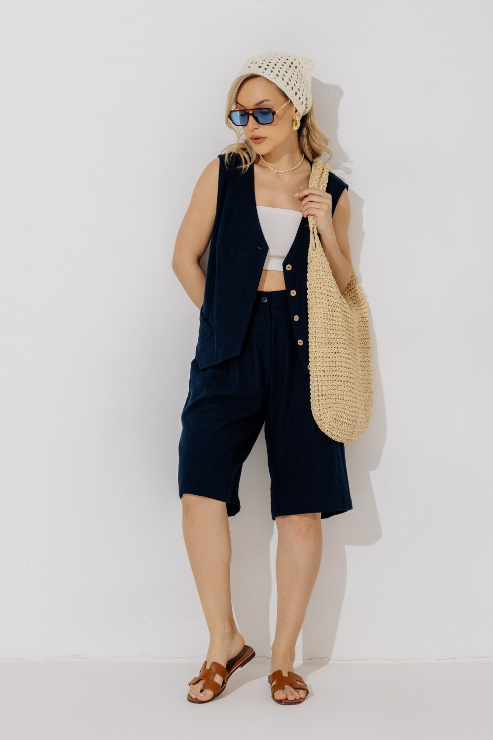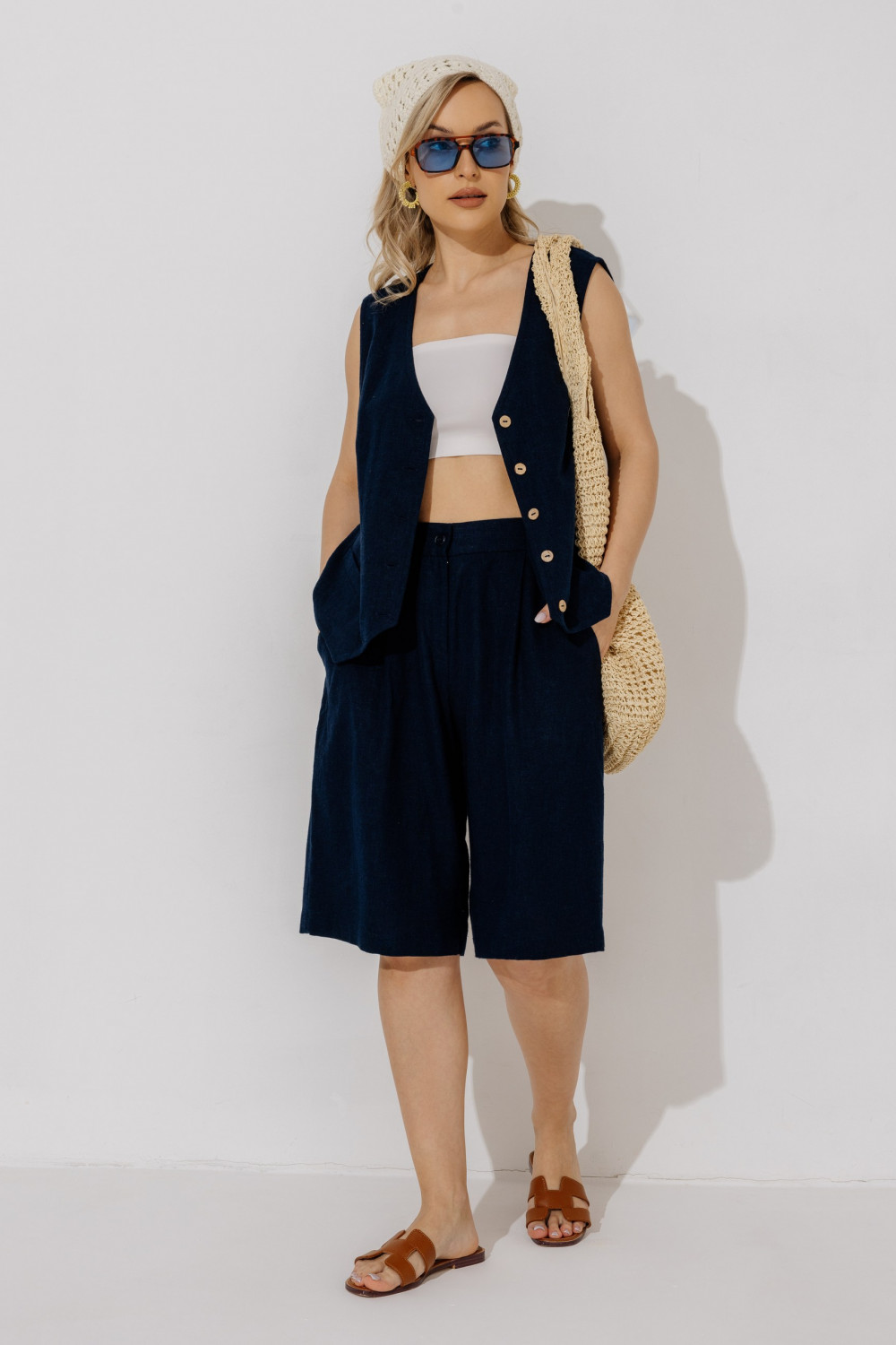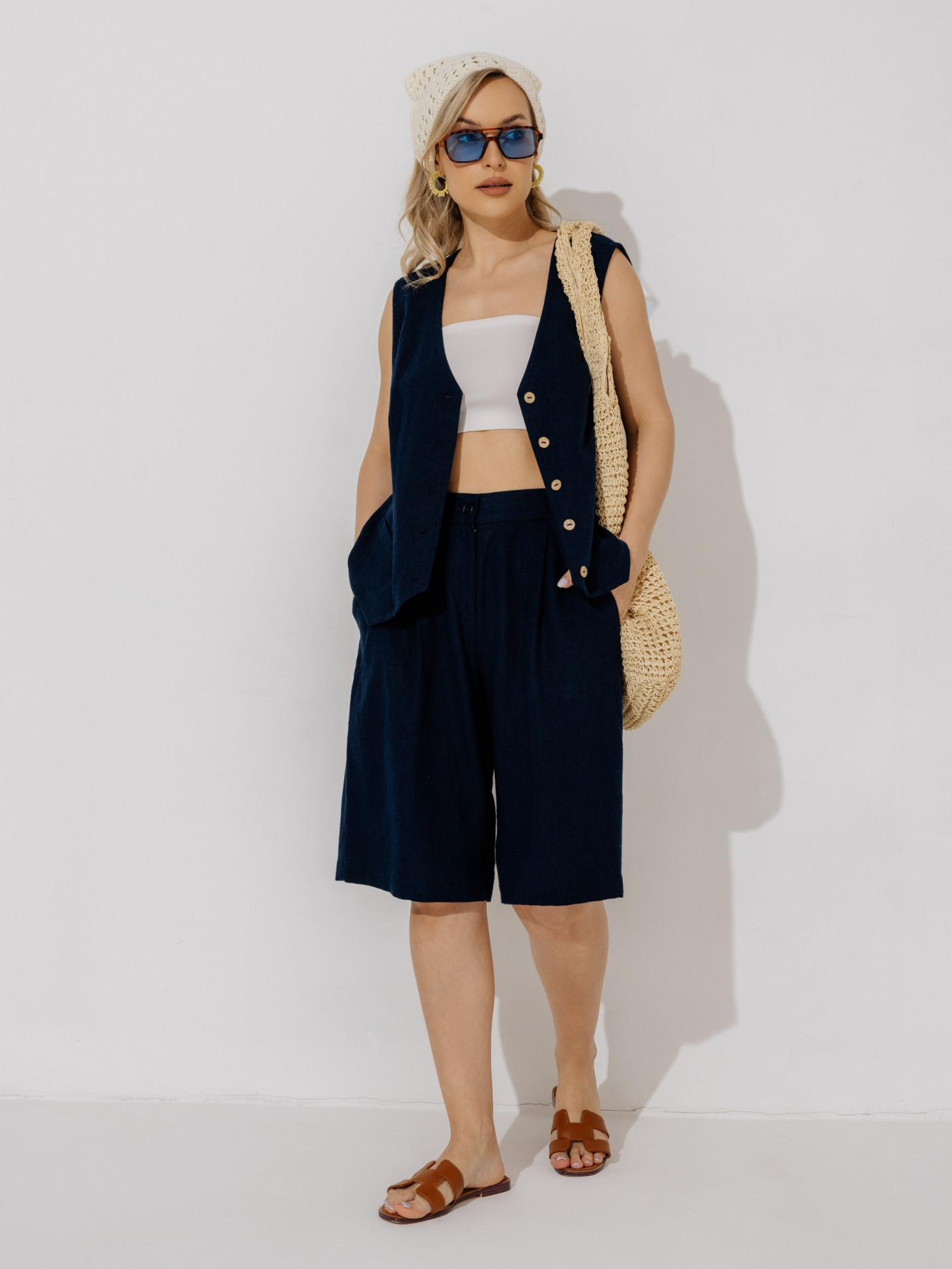 Классические свободные шорты из 60% льна,40%вискозы.