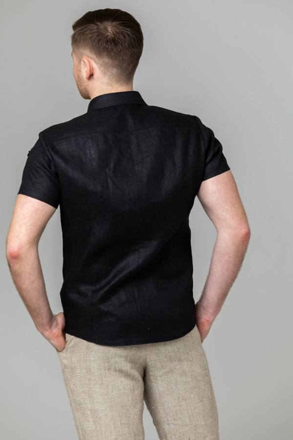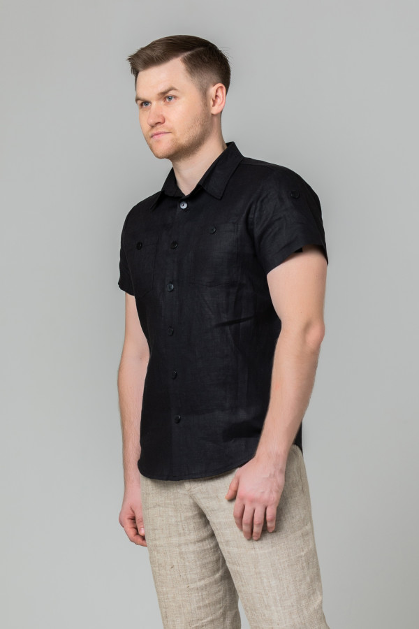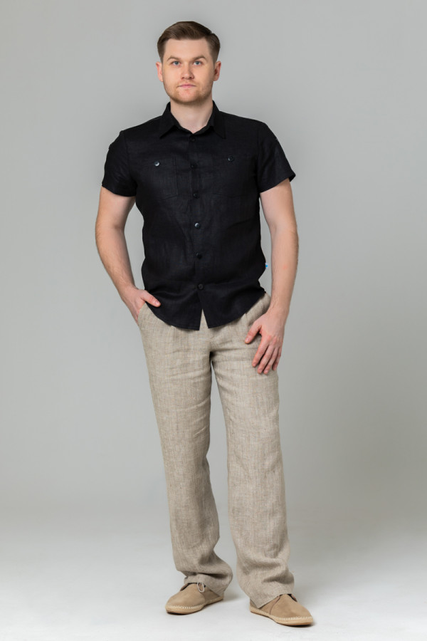 Сорочка мужская из льняной ткани, силуэт приталенный.