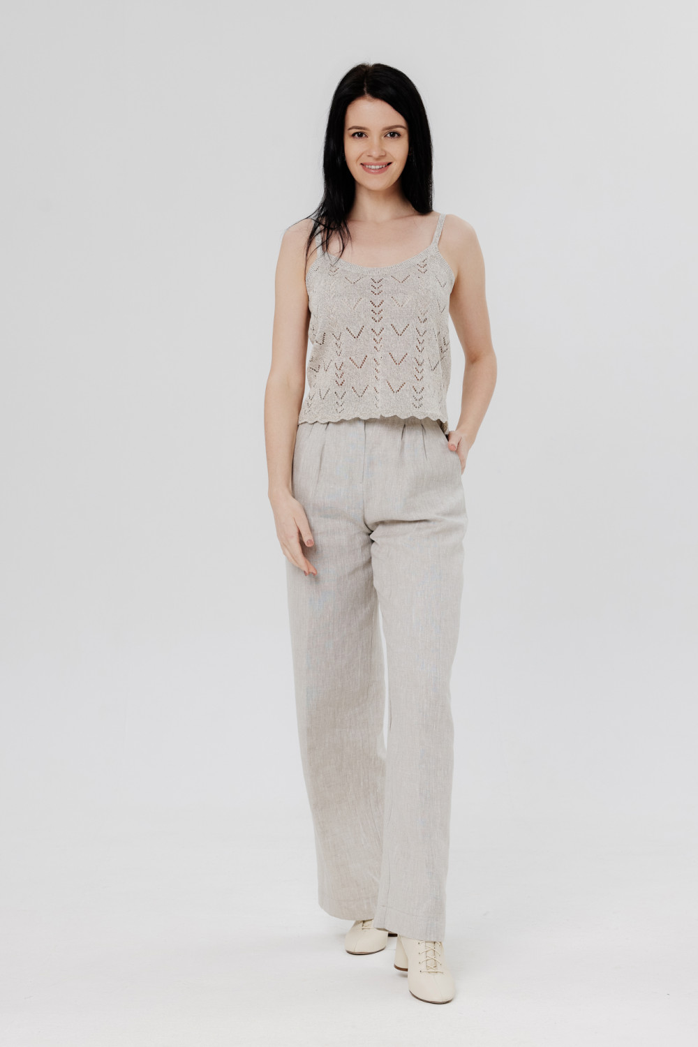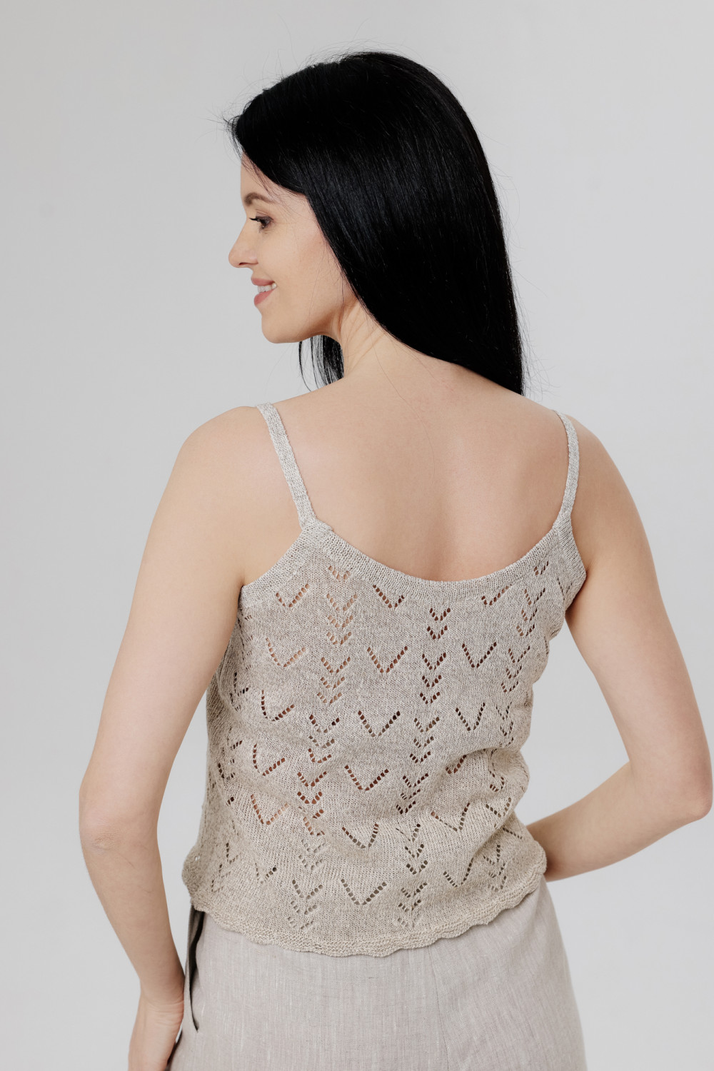 Топ 100% лен, силуэт прямой, ажурный на брительках.