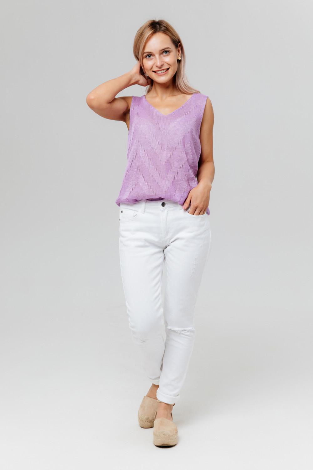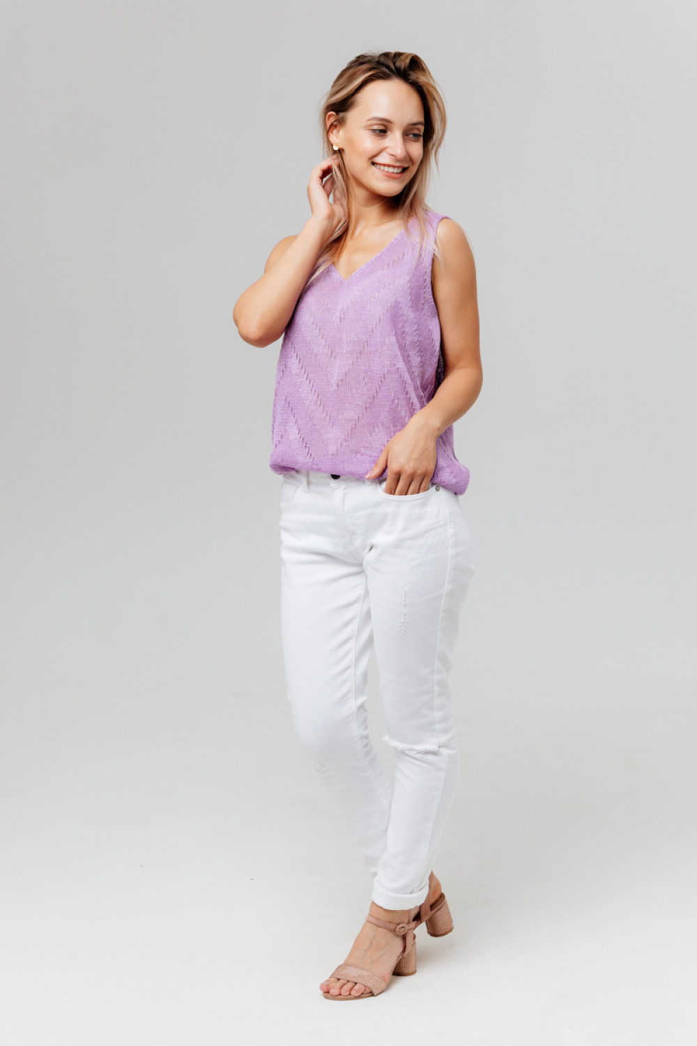 Топ 100 % лен силуэт приталенный,.