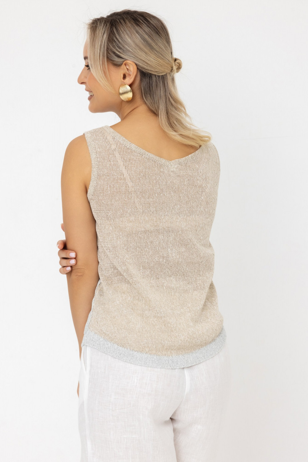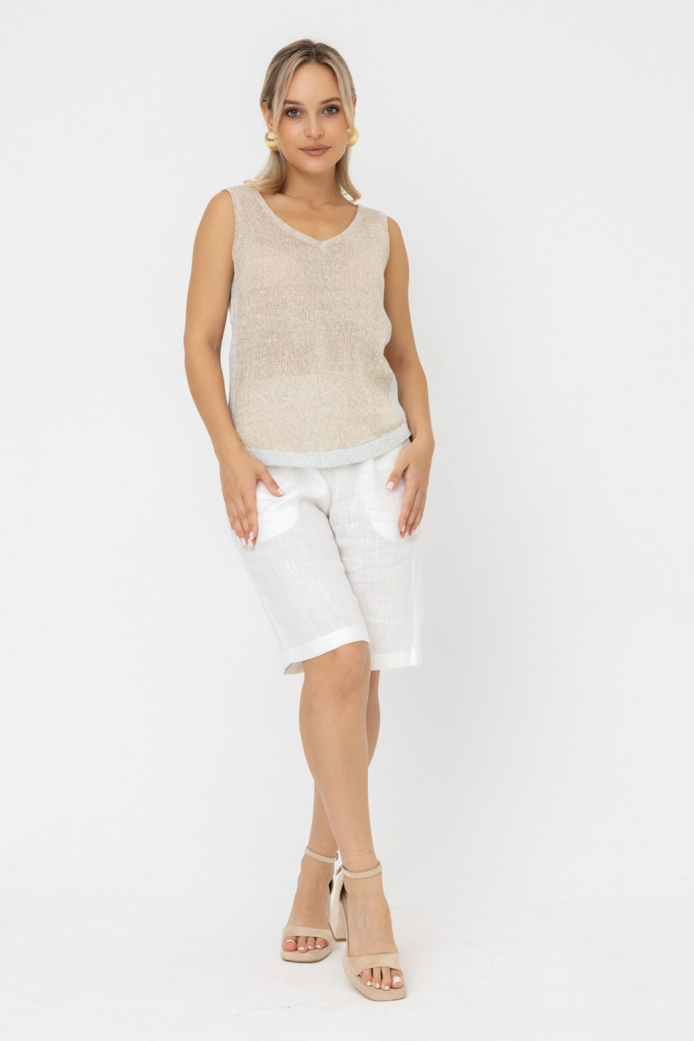 Низ изделия и по боковым швам настрочен льняной лампас с метанитовой нитью.