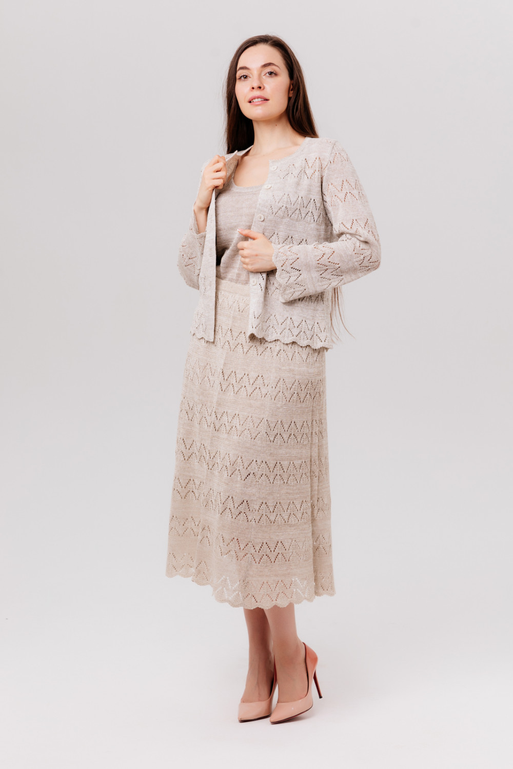 Юбка 100% лен, 4 клина, ажурная с подъюбником.