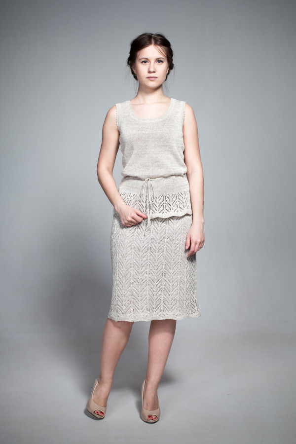 Юбка из льна, внутри подъюбник.Пояс на резинке.