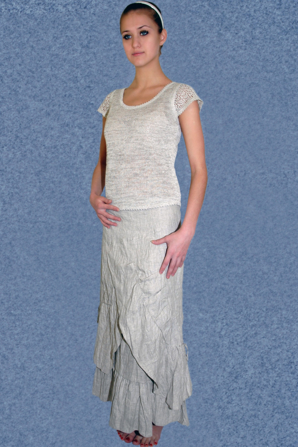 Юбка из льна сложная двойная.
