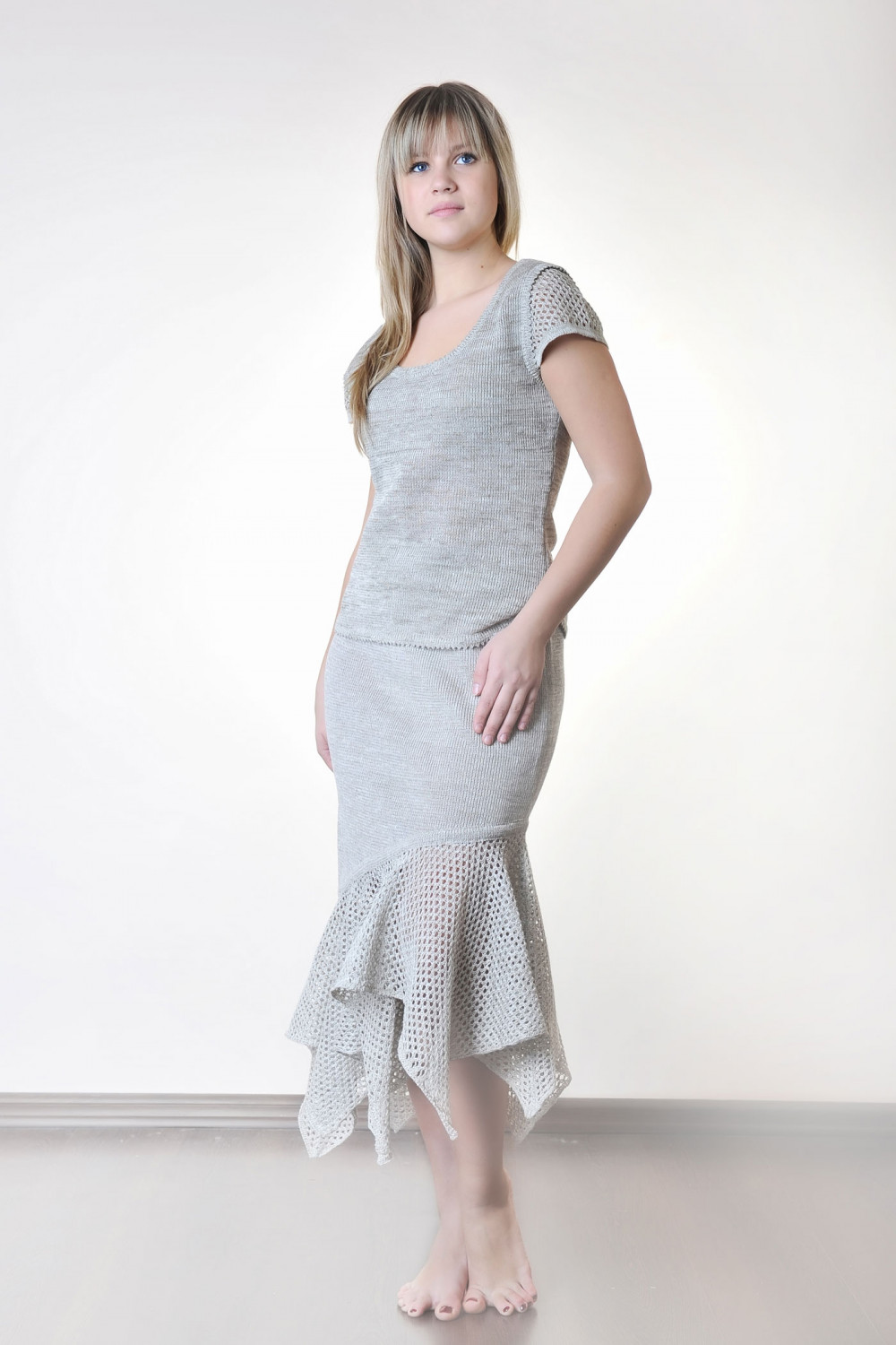 Юбка из льна, прямая понизу ажурный волан, пояс на резинке.