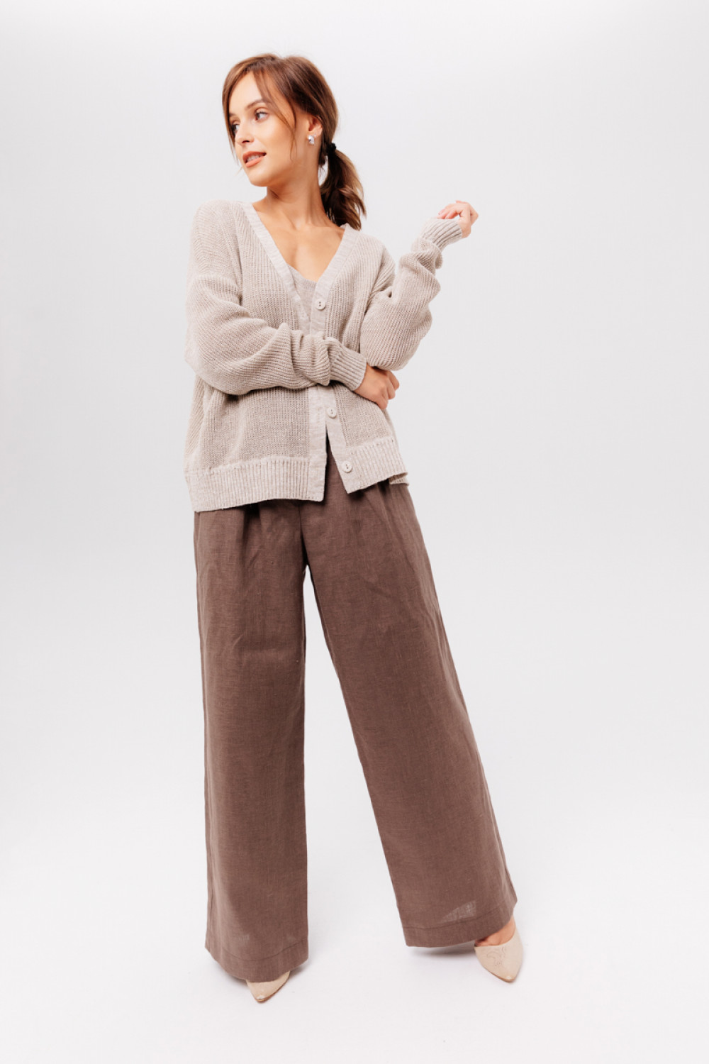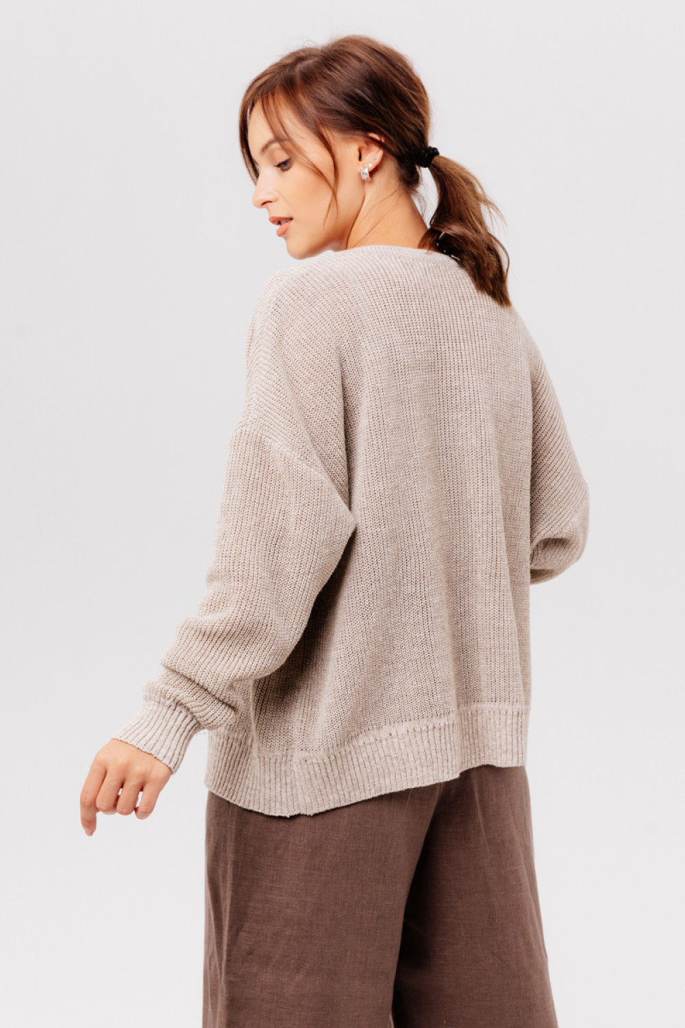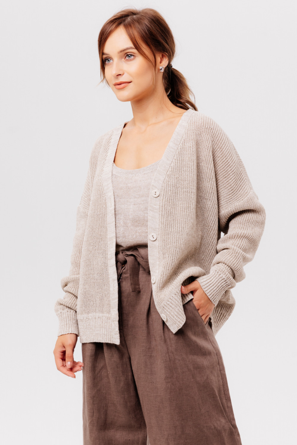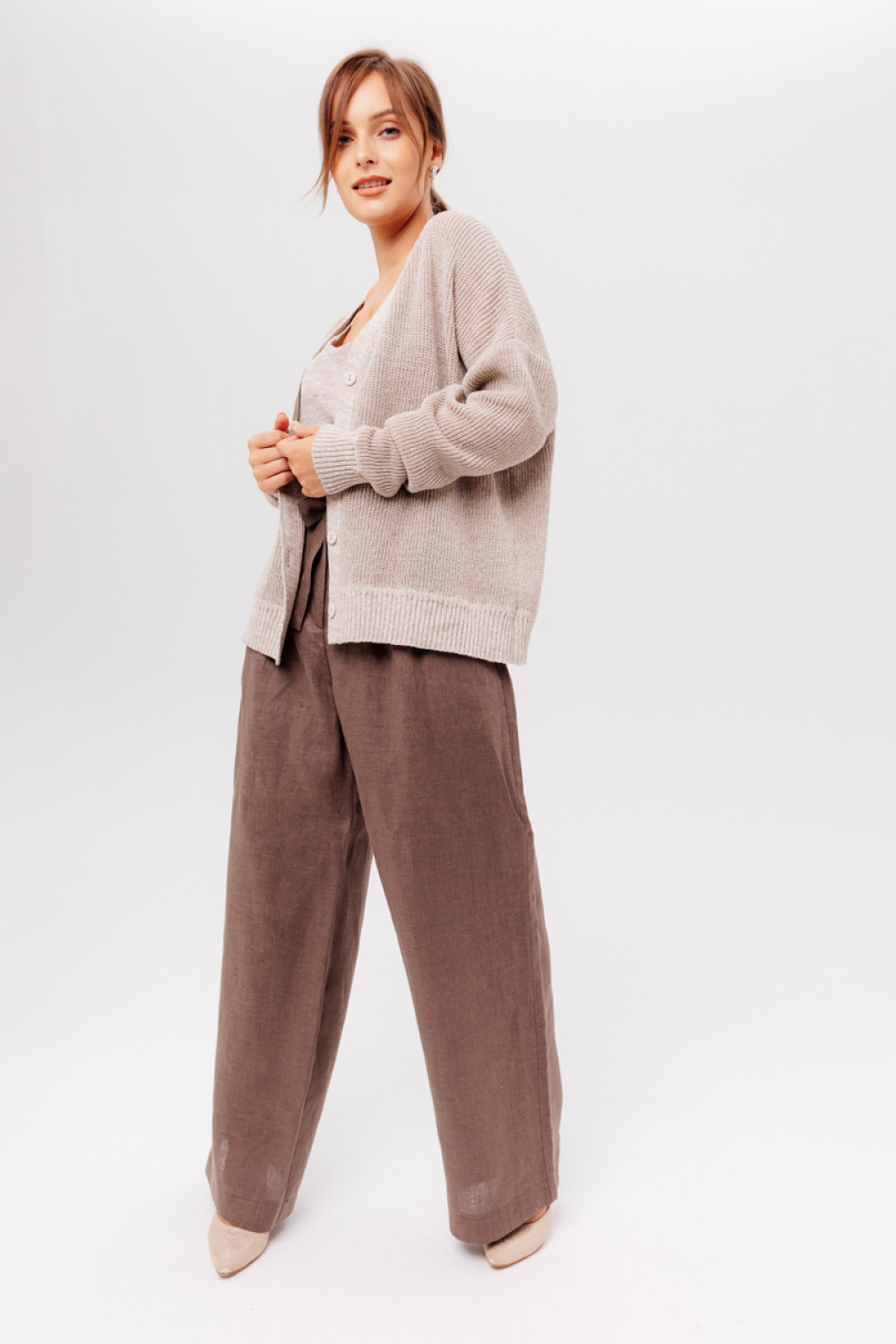 Жакет изо льна, силуэт прямой, рукав втачной длинный. Застежка на 4 пуговицы.