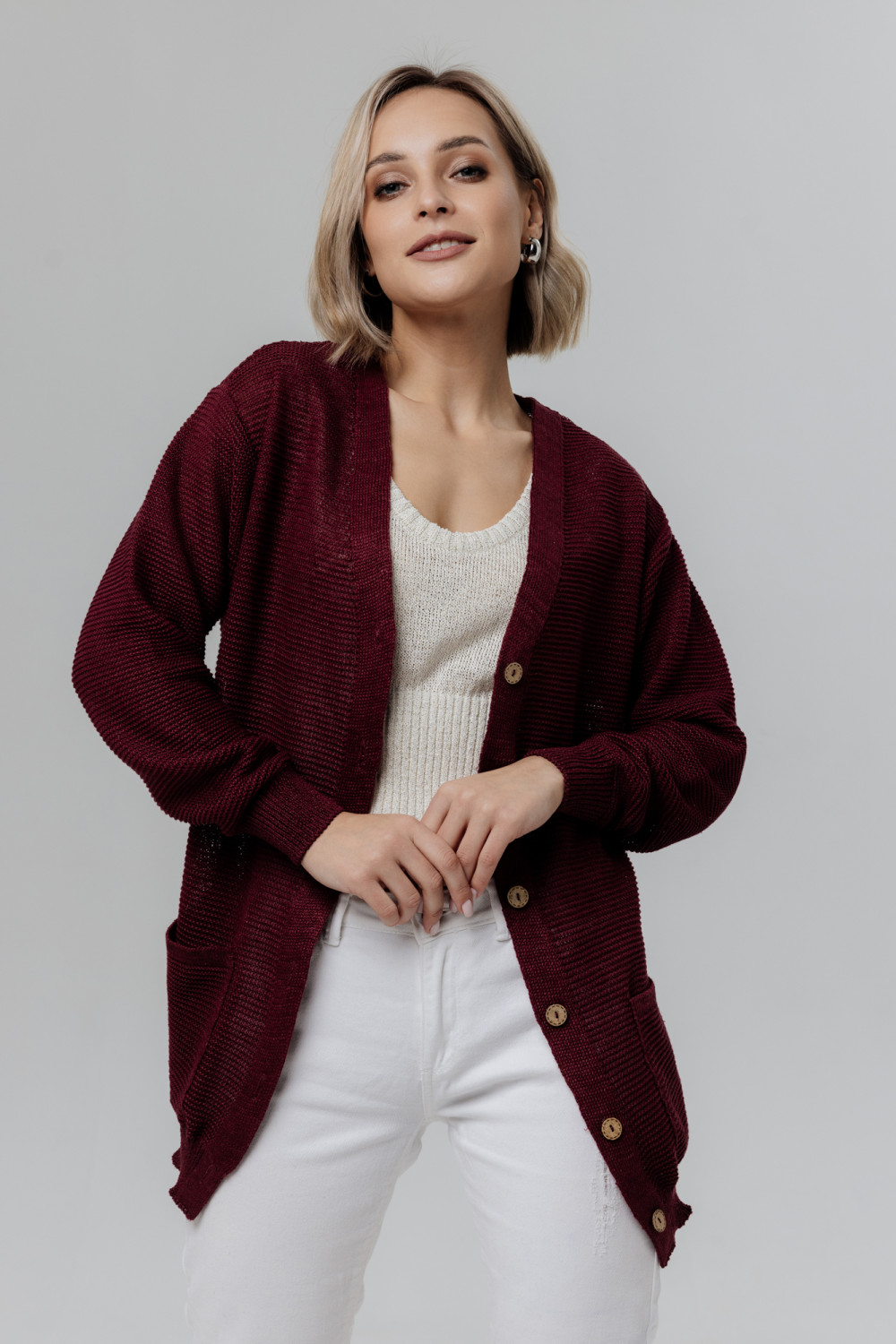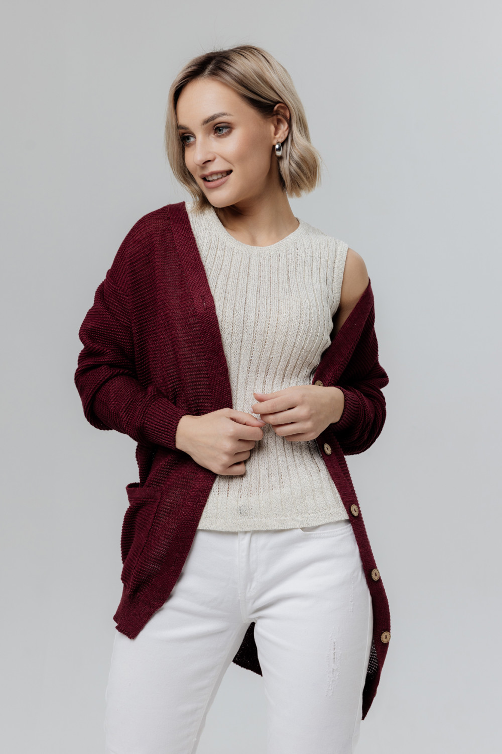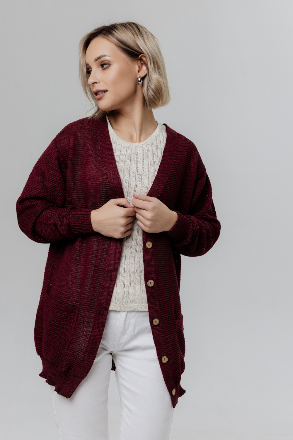 Стильный женский удлиненный жакет изо льна, силуэт прямой.