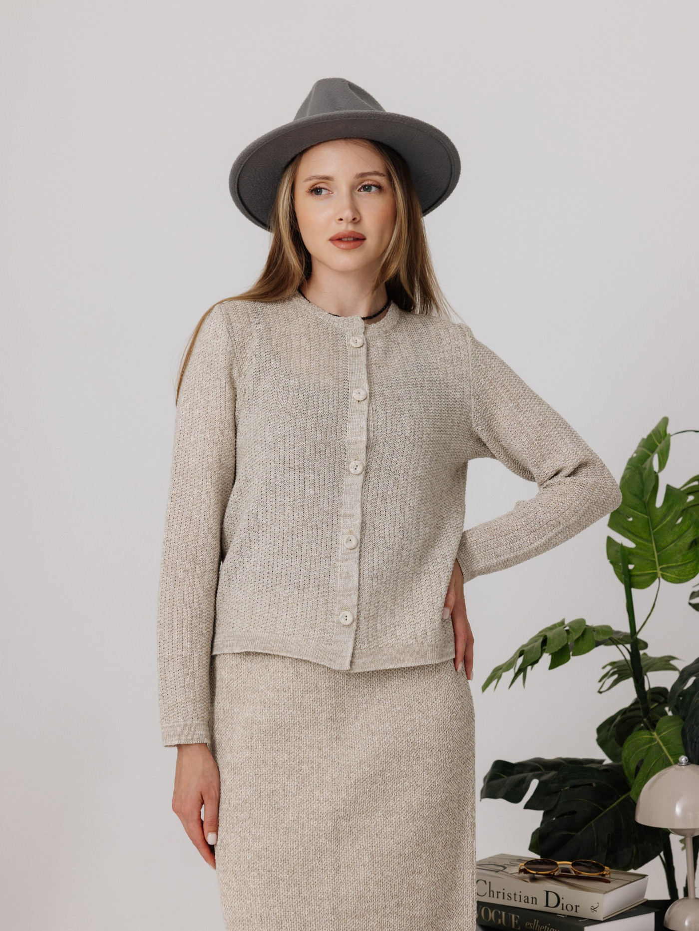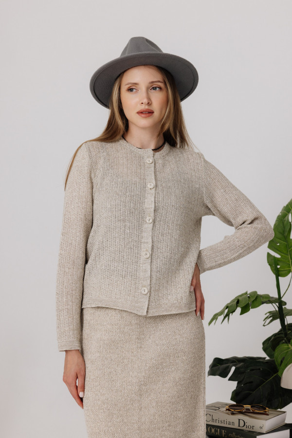 Жакет из льна, рукав длинный втачной, силуэт прямой зауженный к низу.