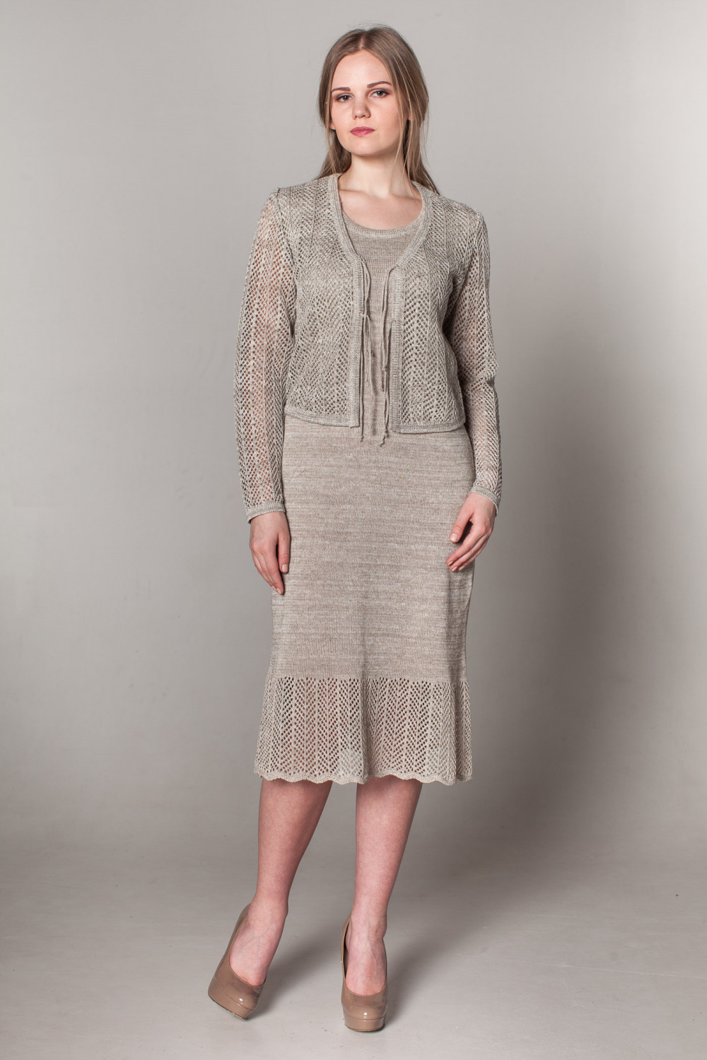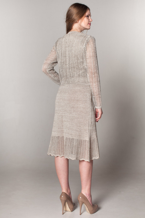 Жакет из льна, ажурный, силуэт укороченный, застежка на завязке,рукав длинный.