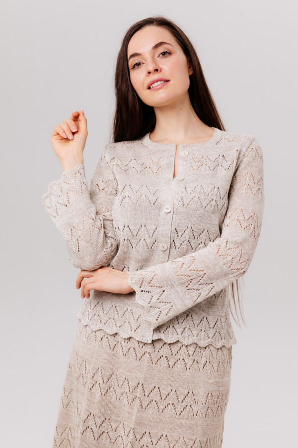 Жакет из льна, ажурный, силуэт прямой, застежка на 5 пуговиц.