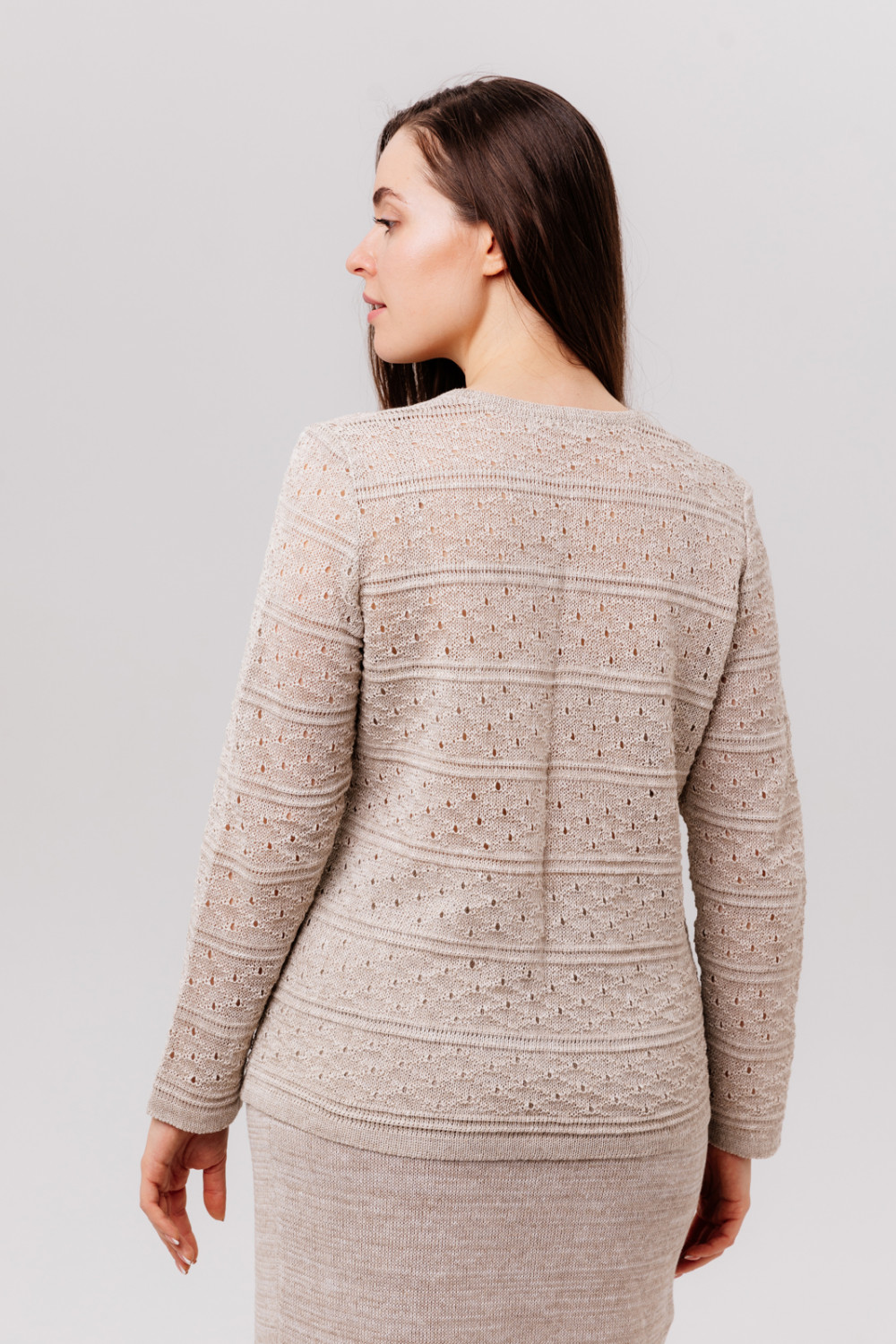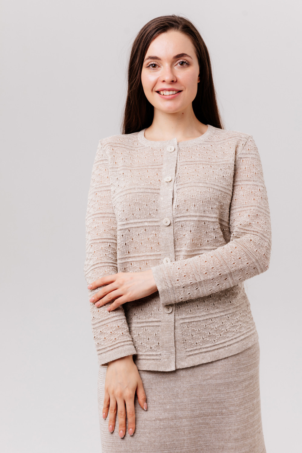 Жакет женский лен 100%, ажур с отделочными валиками, силуэт прямой.