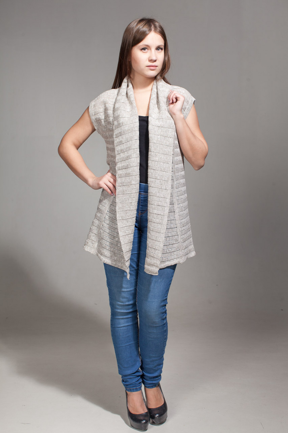 Жилет женский лен 100 %, силуэт прямой. Воротник отложной шалевый.