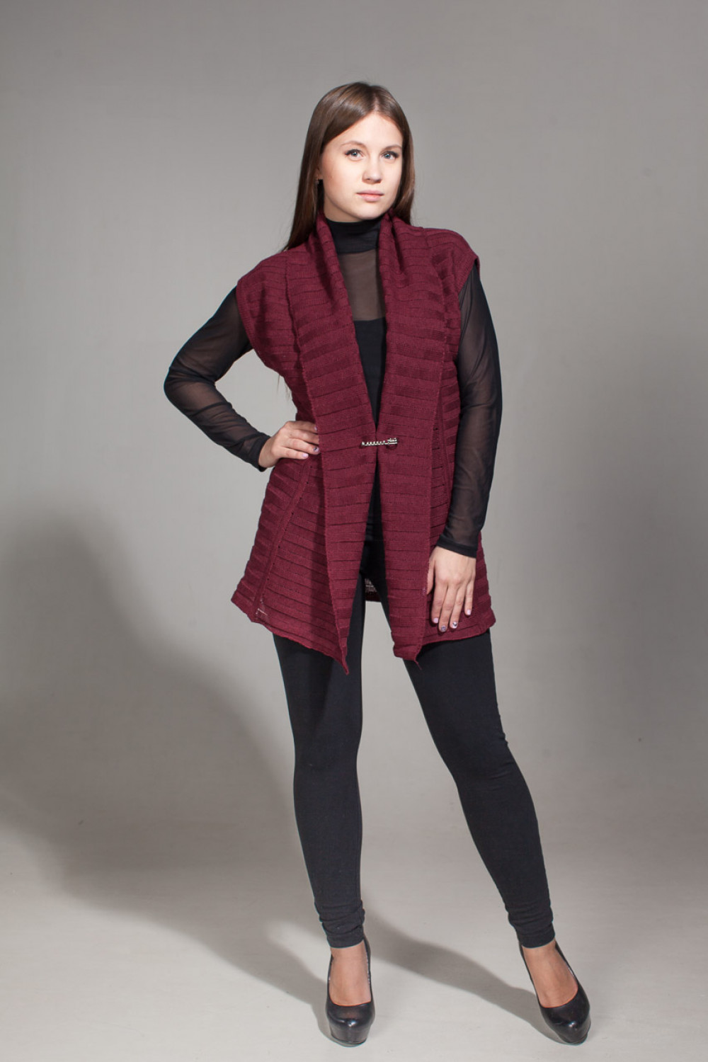 Жилет женский лен 100 %, силуэт прямой. Воротник отложной шалевый.
