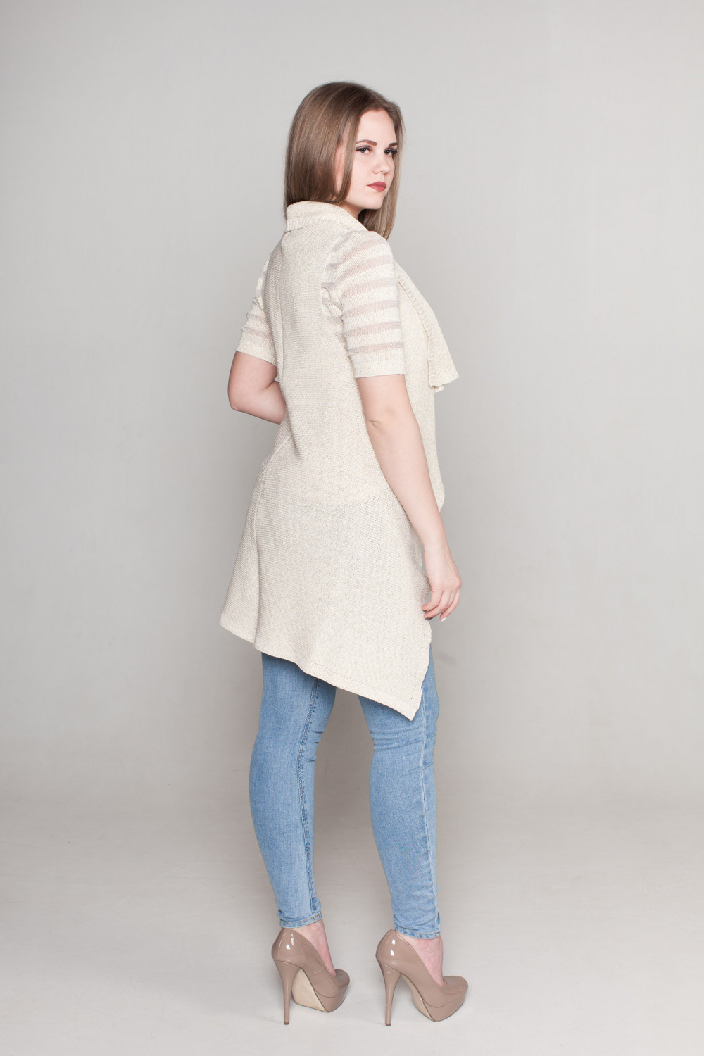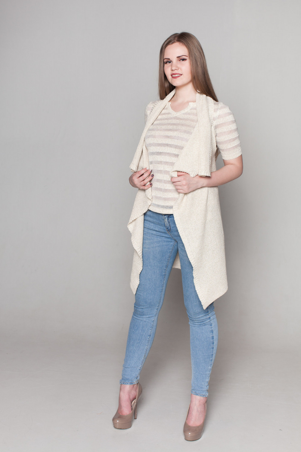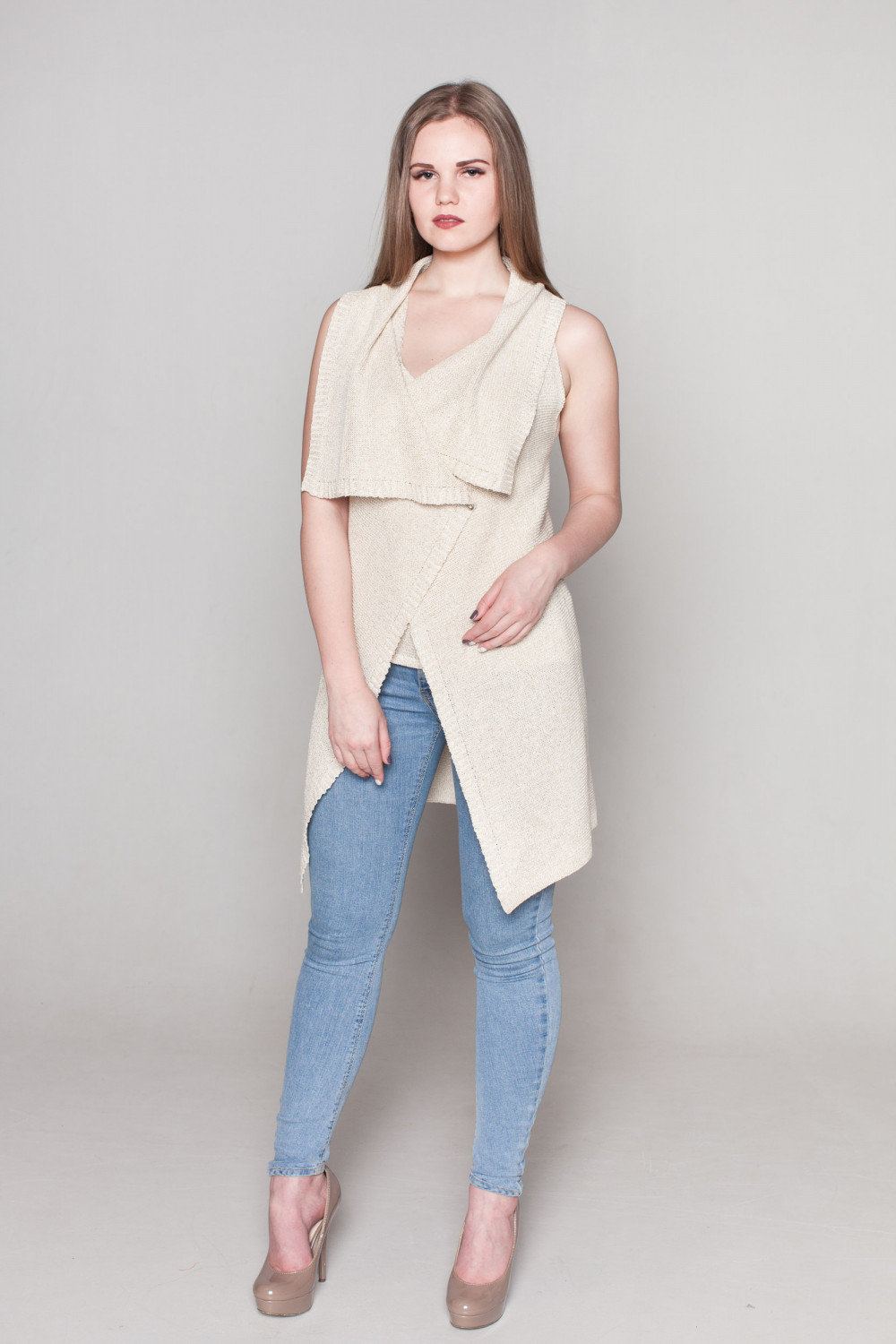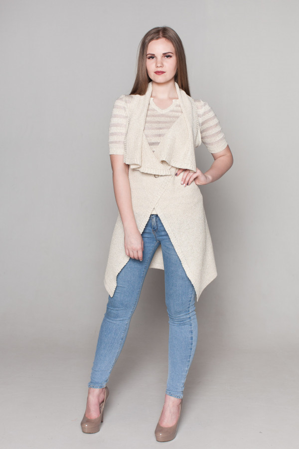 Жилет из льна, силуэт прямой удлиненный.