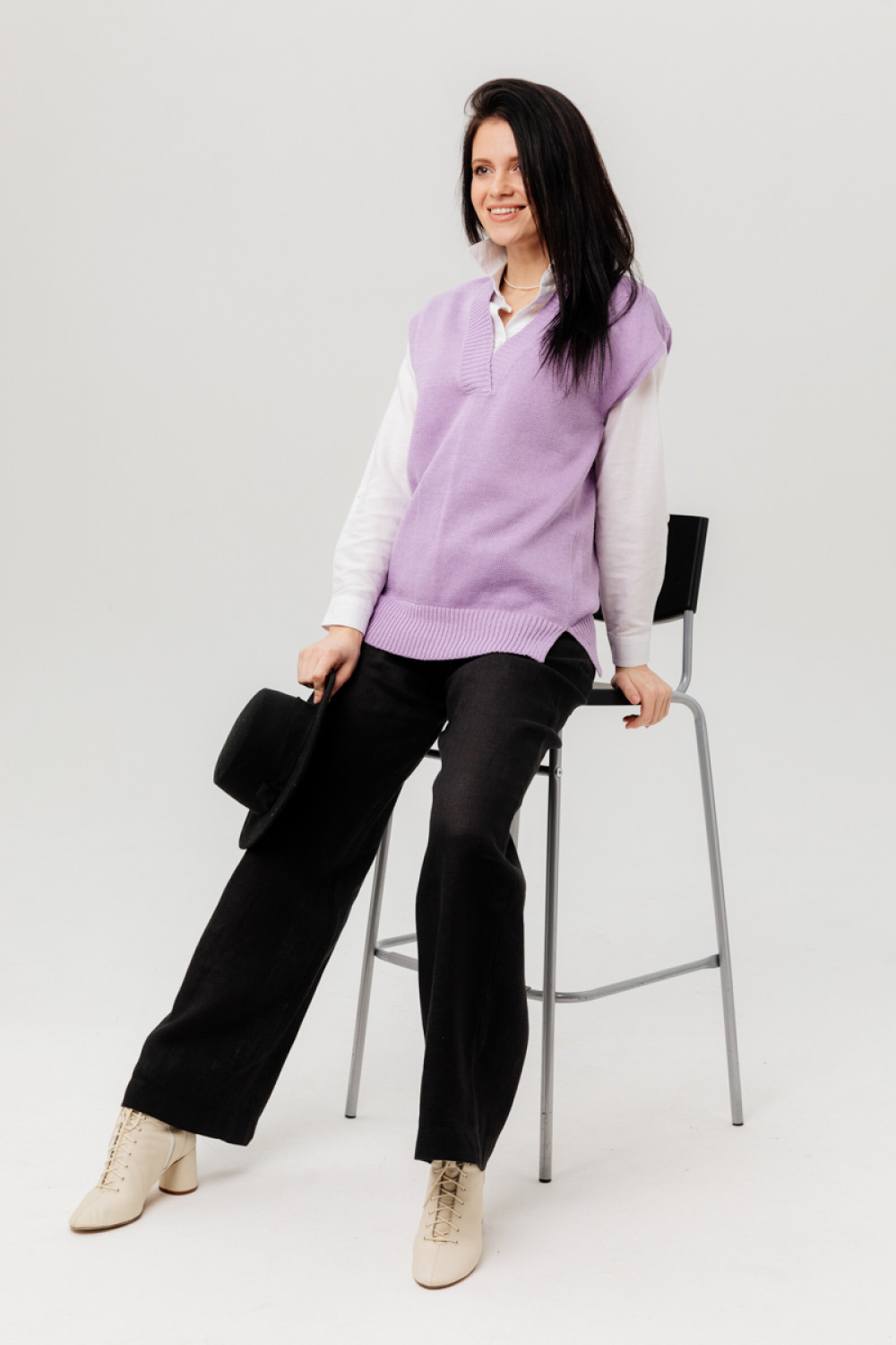 Жилет из 100% льна, прямого силуэта.