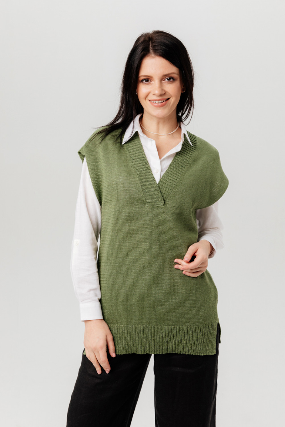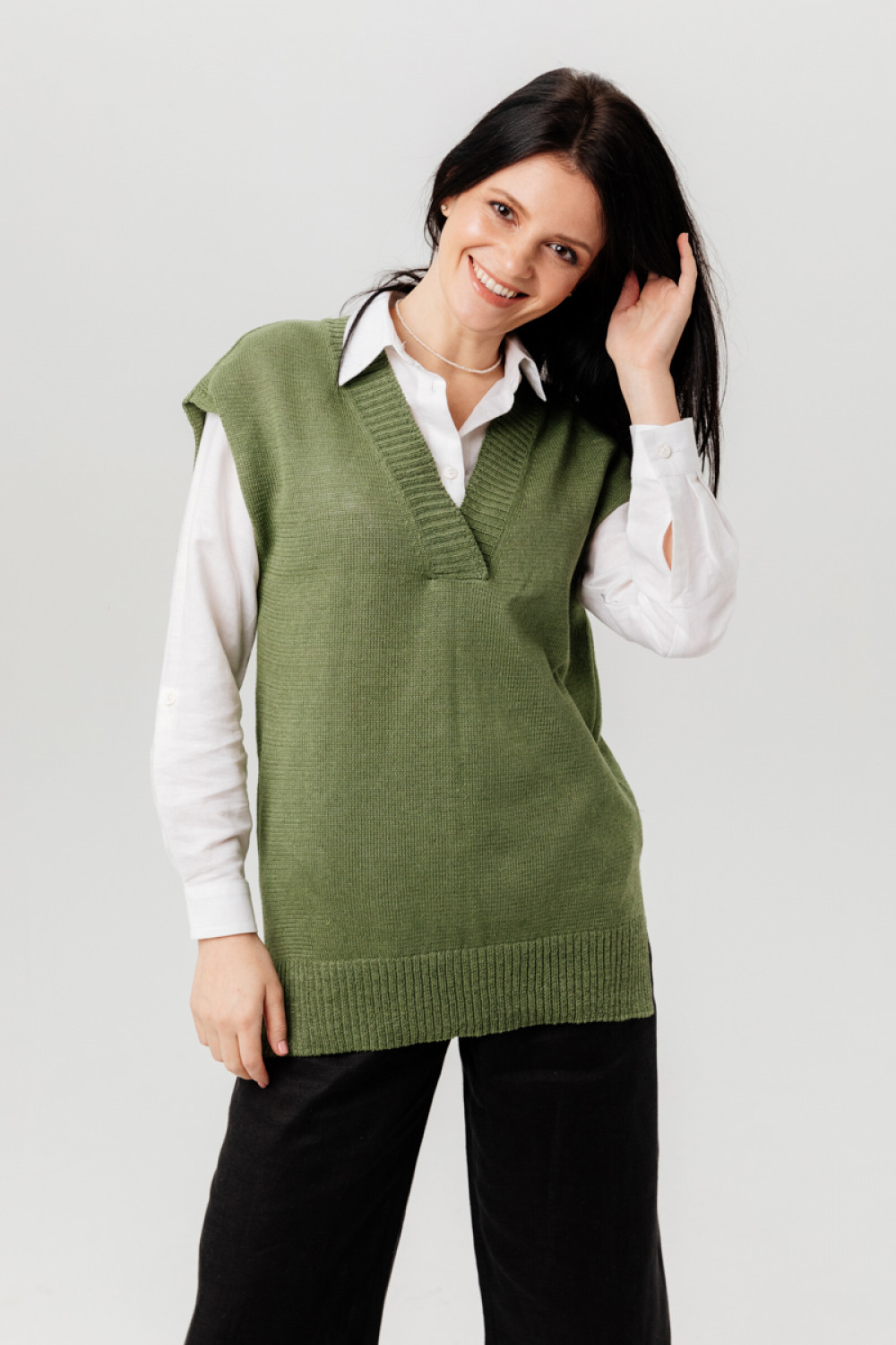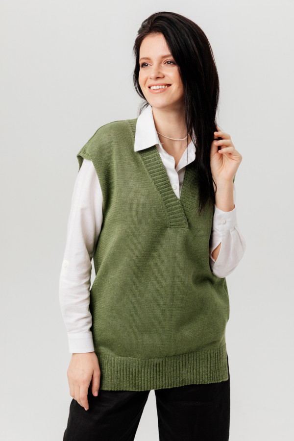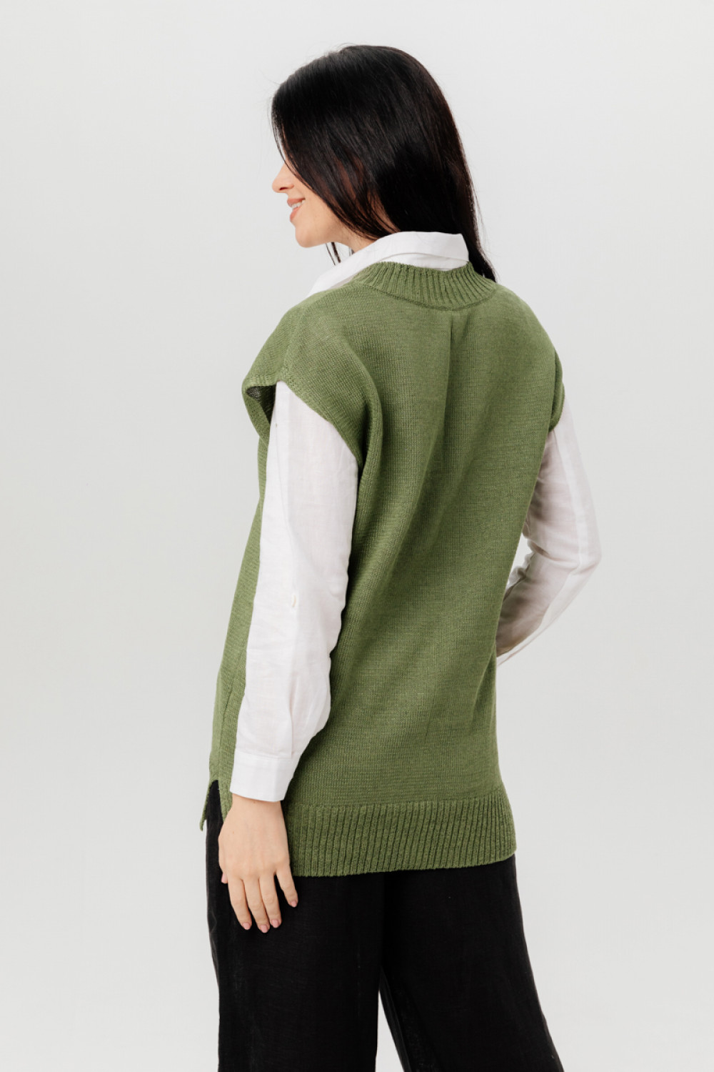 Жилет из 100% льна, прямого силуэта.