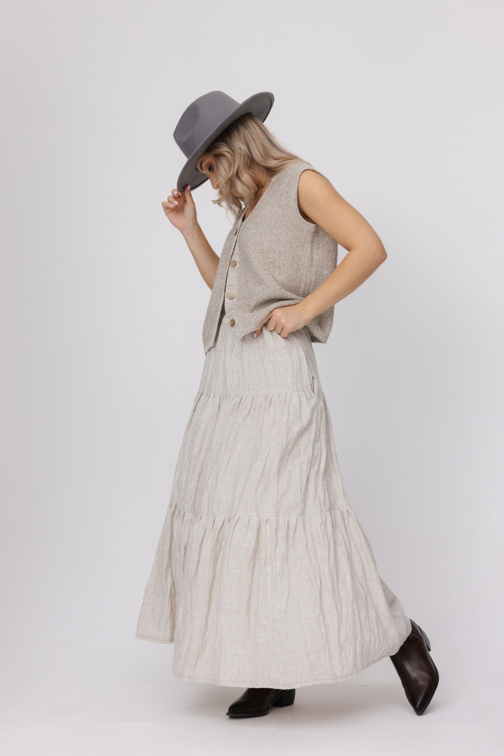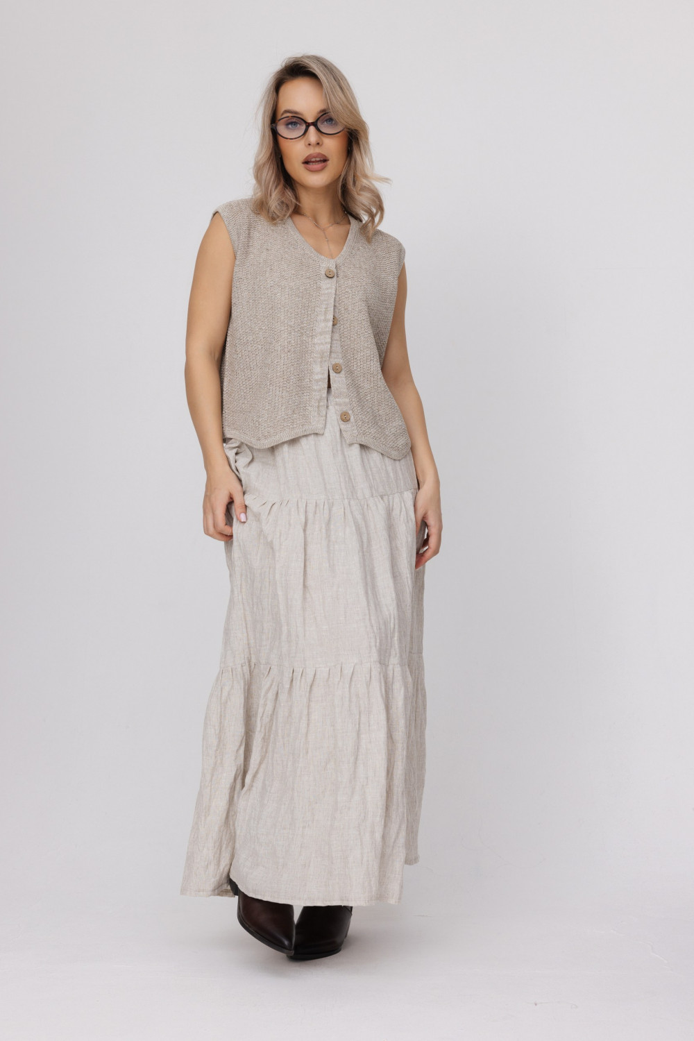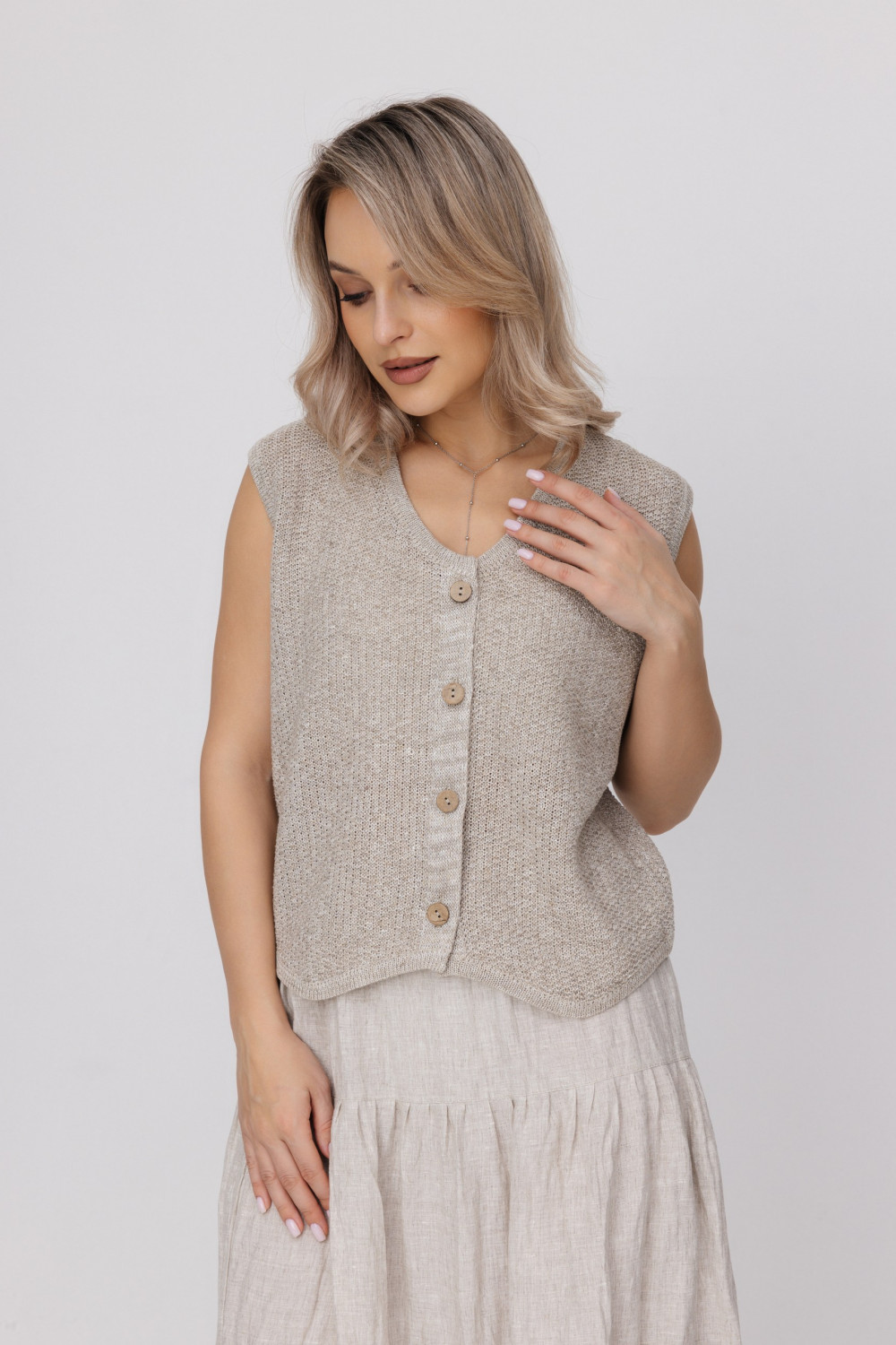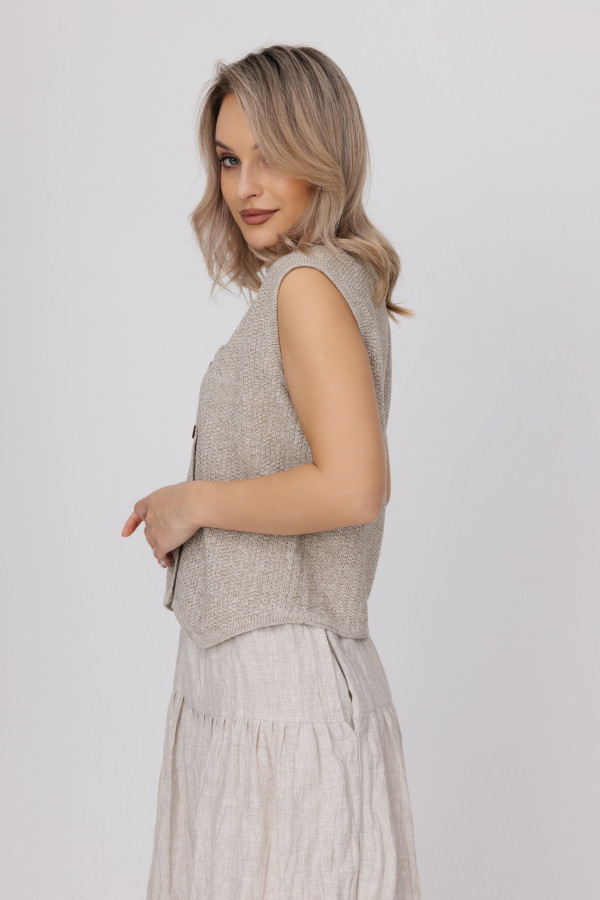 Жилет из 100% льна, прямого силуэта.