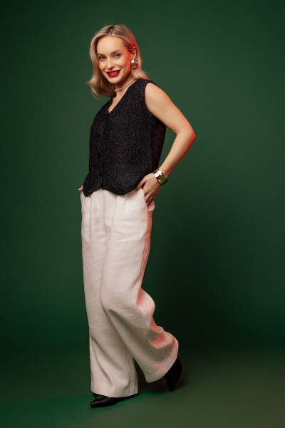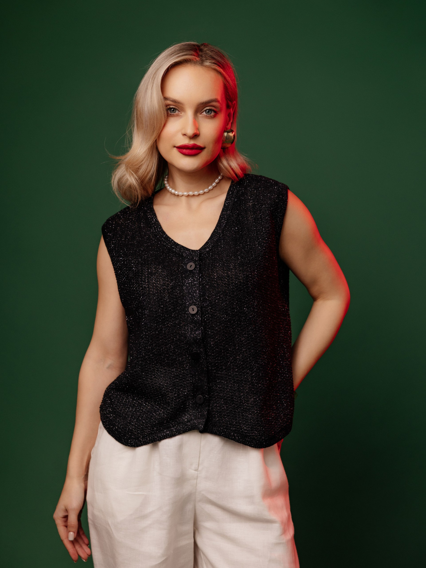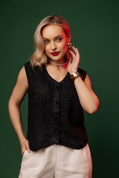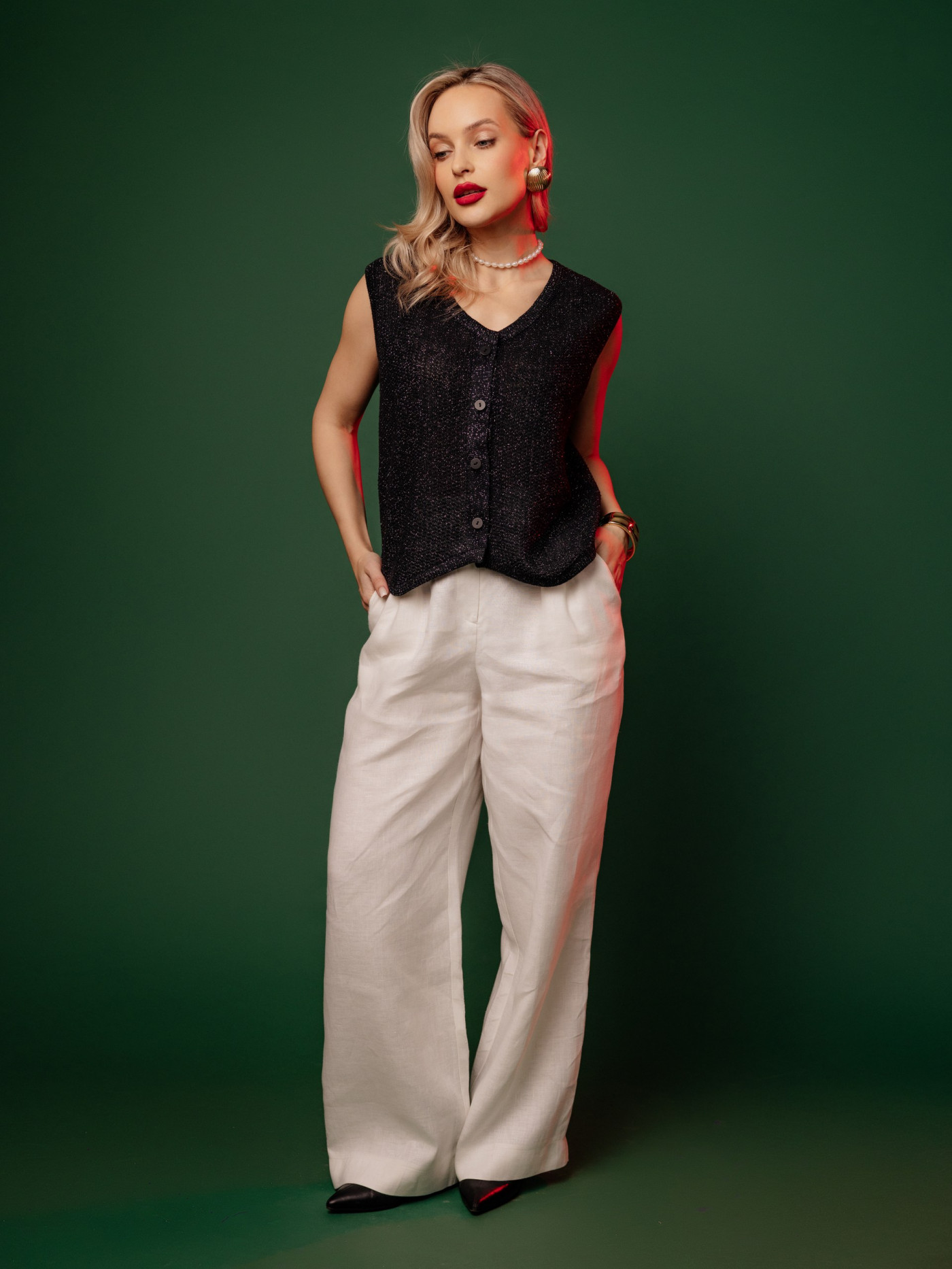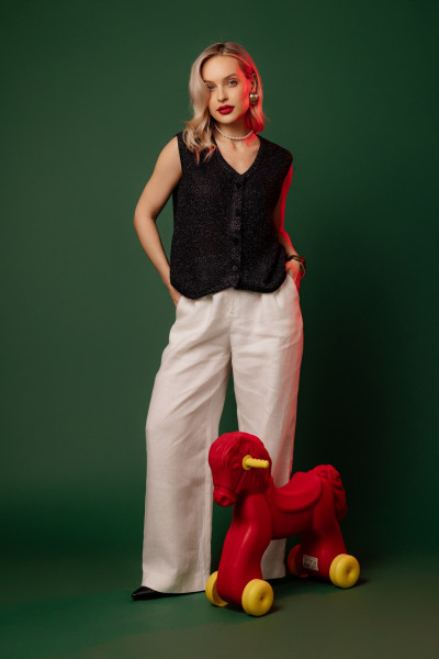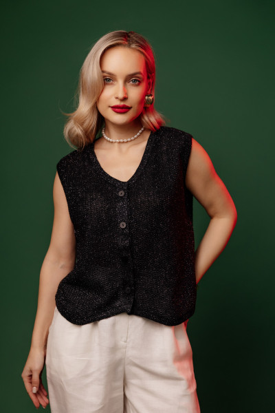 Жилет из 100% льна, прямого силуэта.