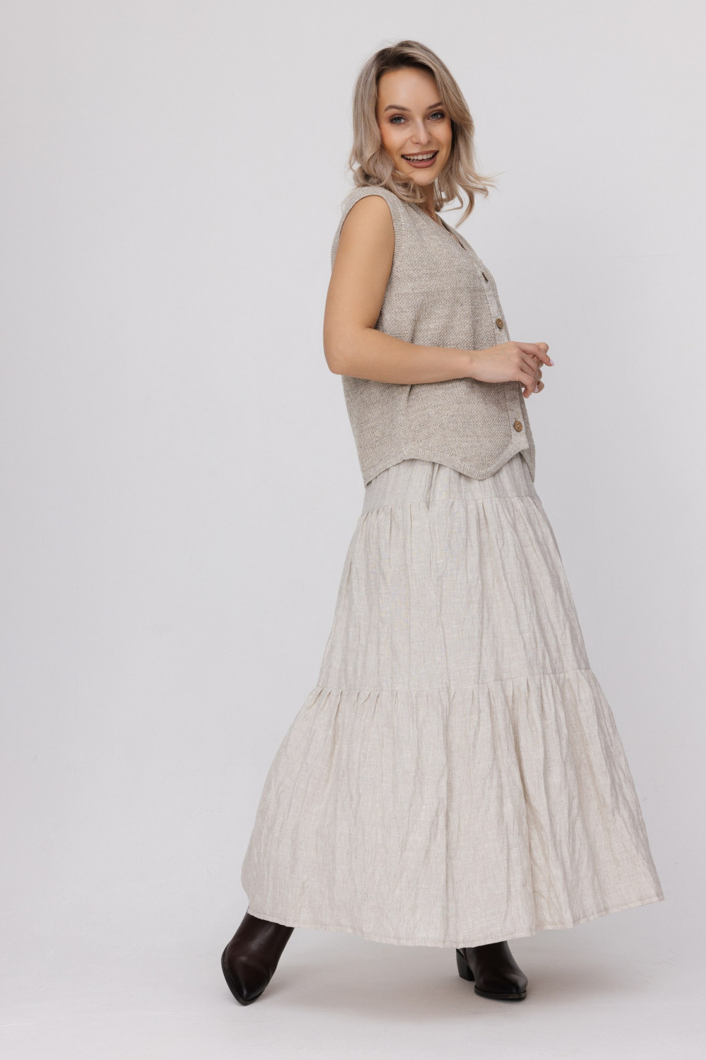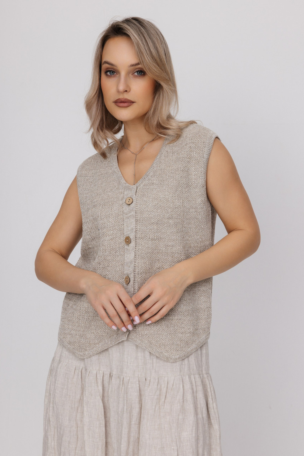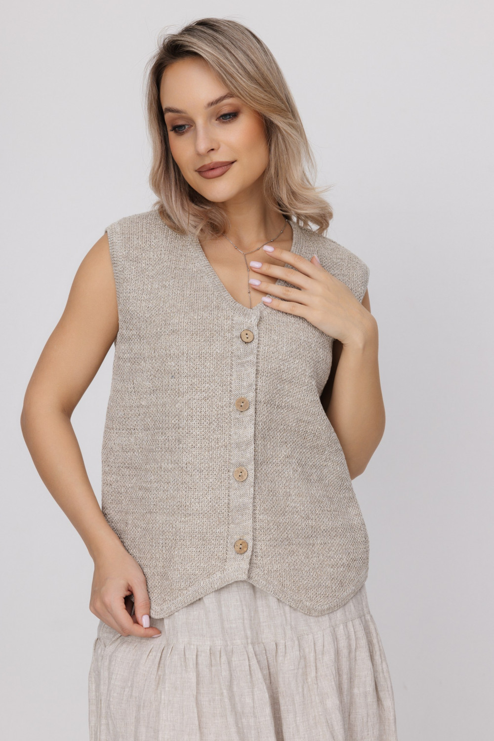 Жилет из 100% льна, прямого силуэта.