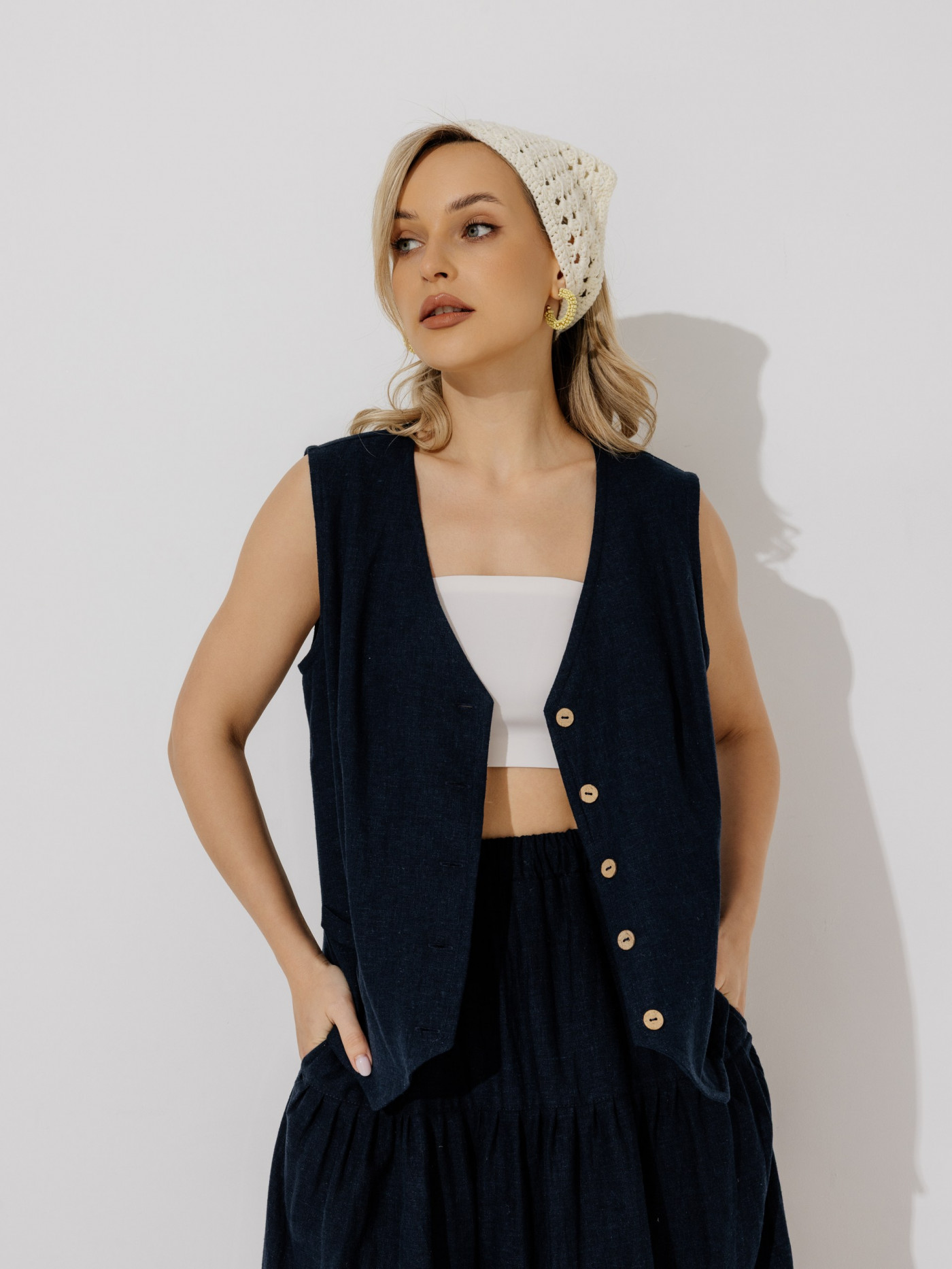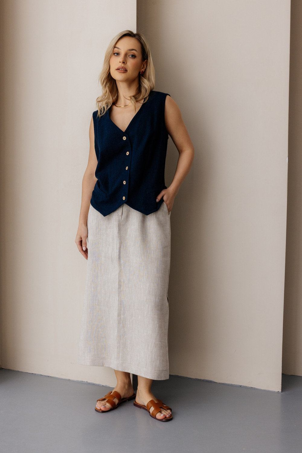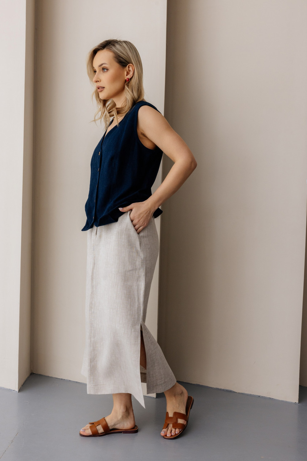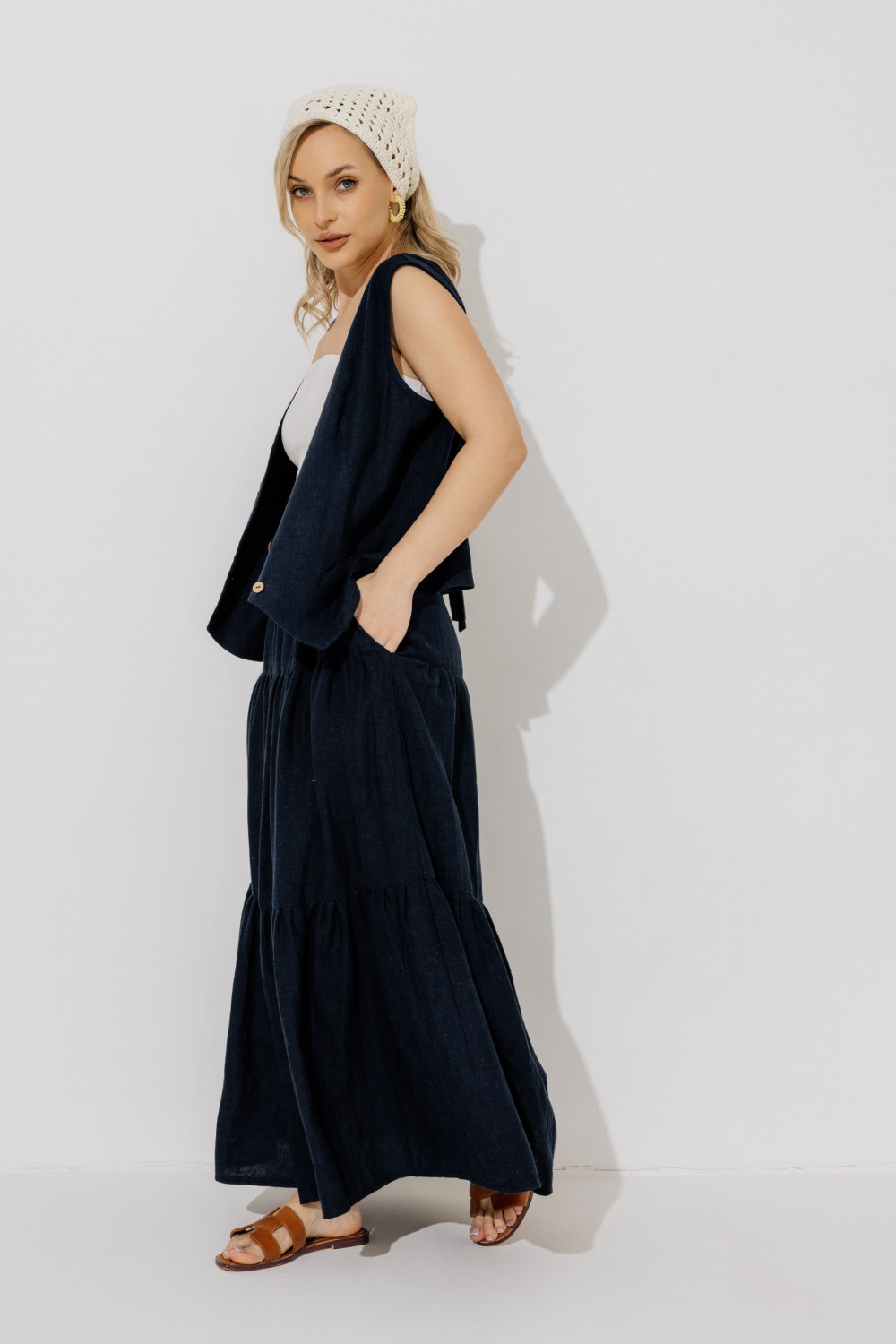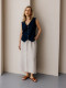 На модели представлены модели юбка 10-123 серый,10-115 т.синий.